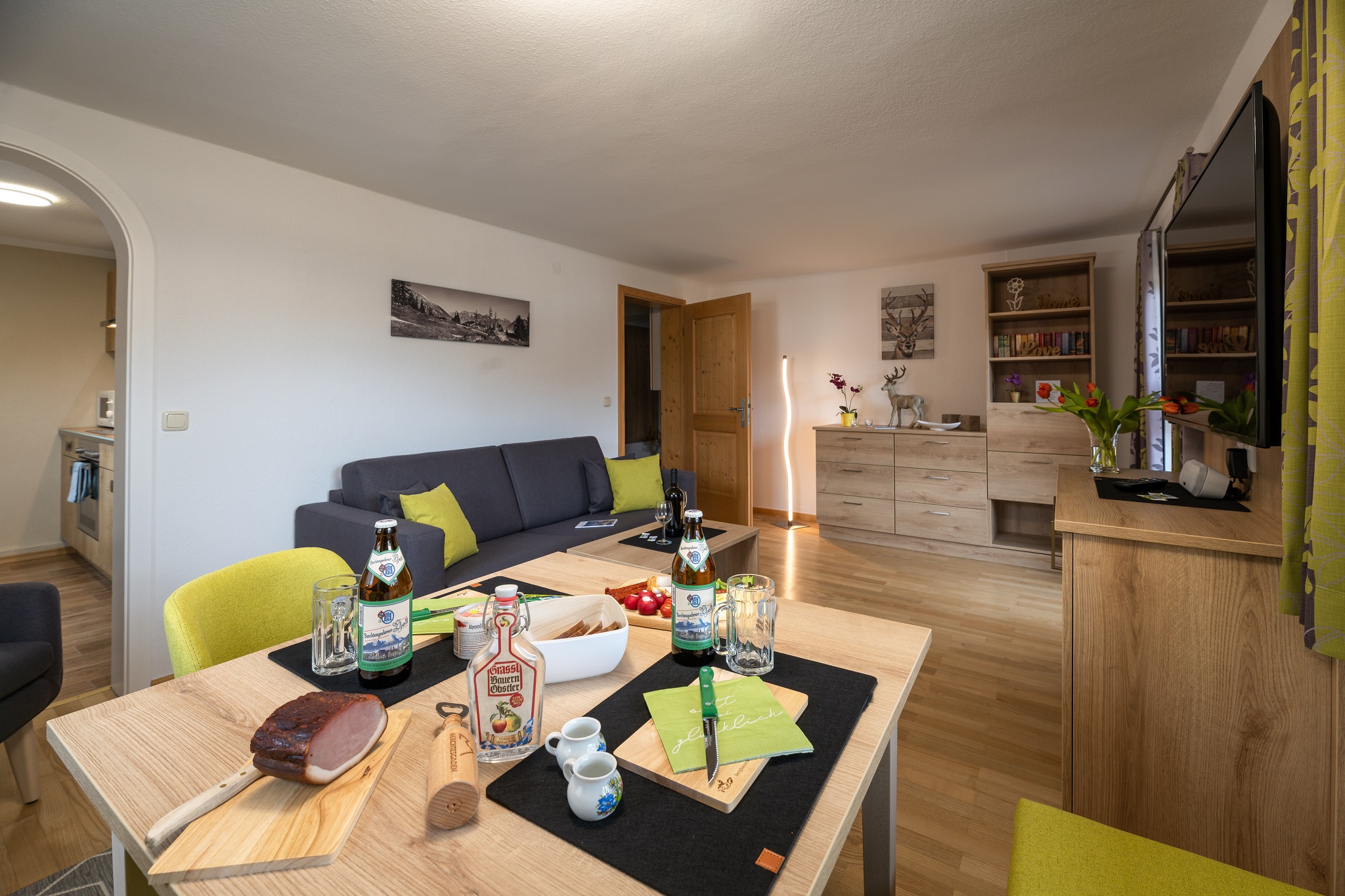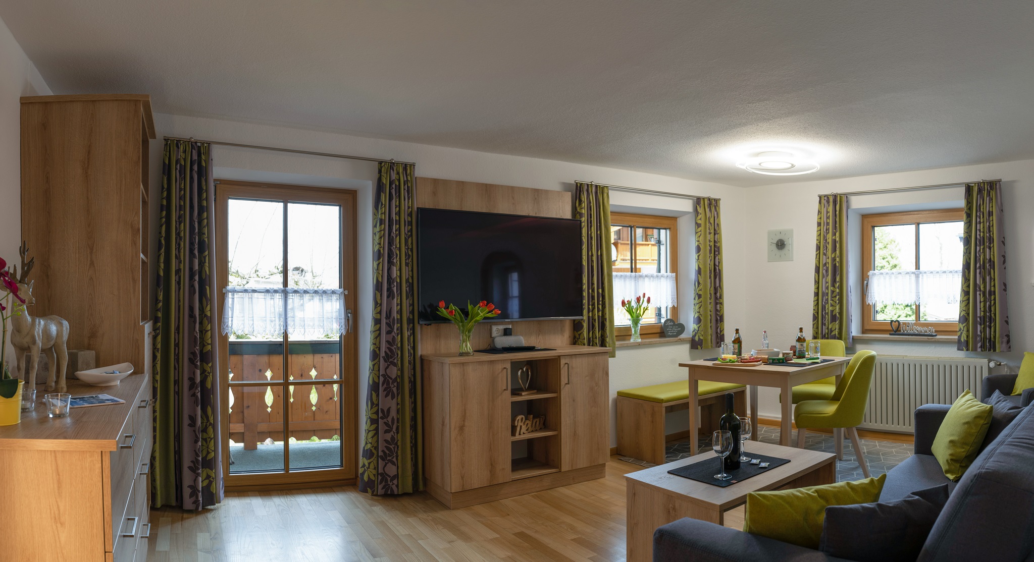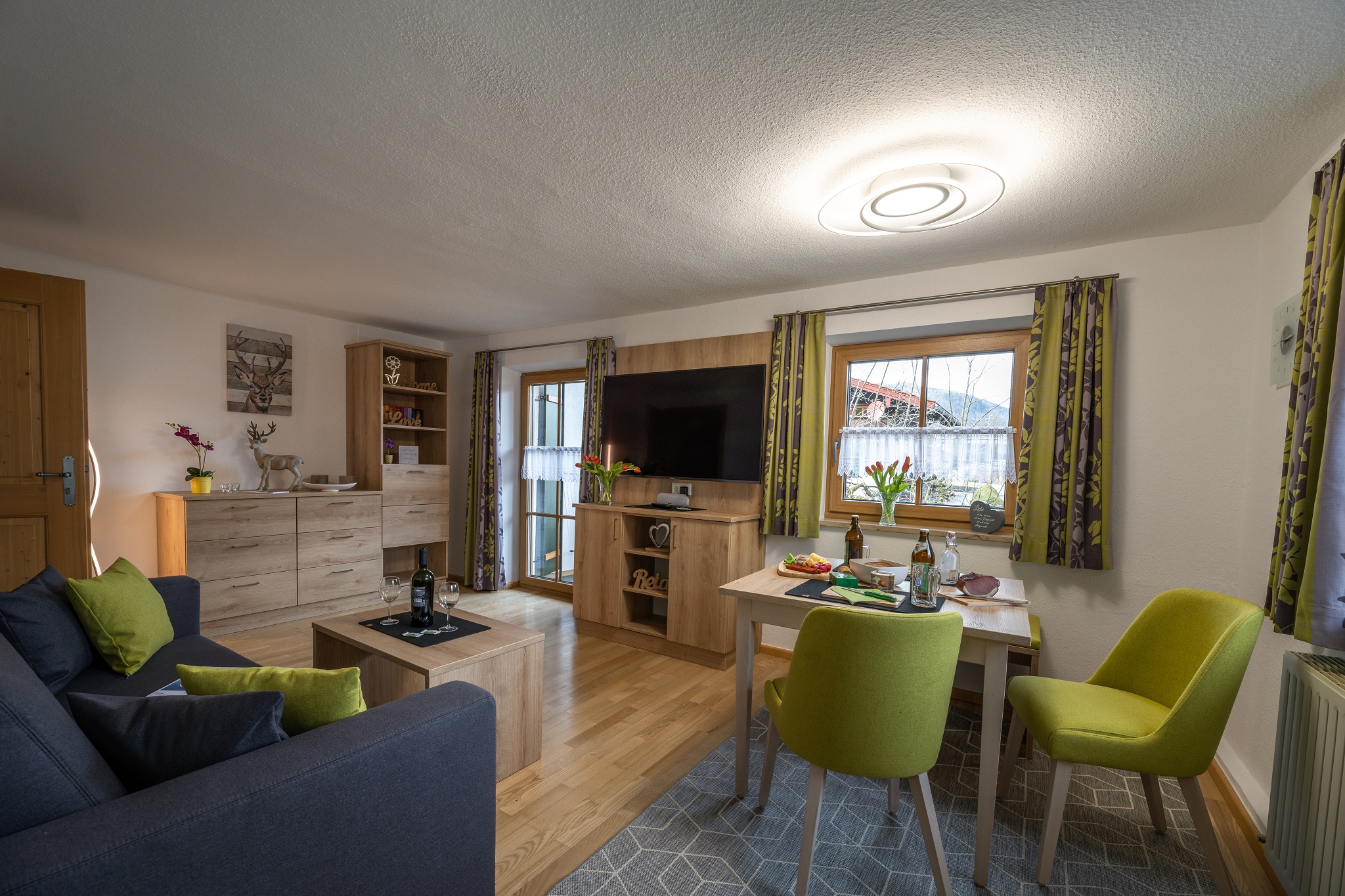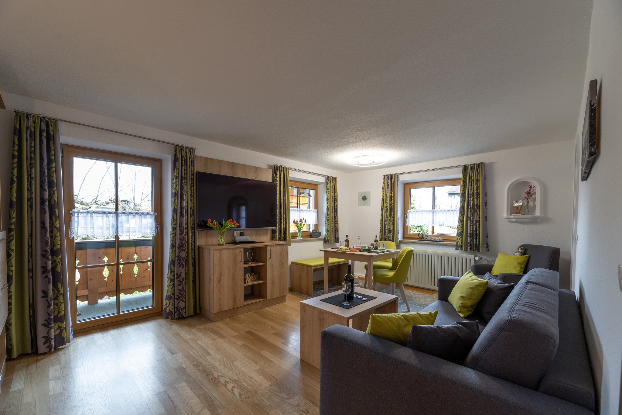 Die Ferienwohnung „Jenner“ im Haus Holzeck in Schönau am Königssee ist eine geräumige und gut ausgestattete Wohnung, die Platz für 2 Personen bietet. Die Wohnung verfügt über 1 Schlafzimmer, ein Wohnzimmer mit einer gemütlichen Sitzecke und einem schönen Essbereich, sowie eine voll ausgestattete Küche mit allen notwendigen Geräten und Utensilien für einen angenehmen Aufenthalt. Es gibt auch ein modernes Badezimmer mit bodenebener Dusche und WC. Die Wohnung bietet mit ihren großen Fenstern viel natürliches Licht und einen wunderschönen Blick auf die umliegende Natur. Es gibt auch einen Balkon, von dem aus man die Aussicht genießen kann. Unsere Ferienwohnung „Jenner“ bietet auch eine Reihe von Annehmlichkeiten, darunter kostenfreies WLAN, Parkplätze und eine Skiaufbewahrung. Sie ist ein perfekter Ausgangspunkt für Outdoor-Aktivitäten wie Wandern, Skifahren, Mountainbiken und vieles mehr. Insgesamt ist die Ferienwohnung Jenner im Haus Holzeck eine komfortable und gut ausgestattete Unterkunft in einer wunderschönen Umgebung, die sie zu einem perfekten Urlaubsziel für jeden Geschmack und jede Jahreszeit macht.