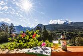Unser Hof liegt malerisch auf einer Anhöhe von 680 Metern mit Blick auf die wunderbare Bergwelt des Berchtesgadener Landes in bester Alleinlage. Der Panoramablick schwenkt vom Kehlstein über den Watzmann zum Hochkalter - eine Aussicht, die auch uns täglich dankbar sein lässt. Ramsau und Berchtesgaden liegen fünf km entfernt, den Königssee erreichen Sie in etwa 15 Minuten, nach Salzburg brauchen Sie ungefähr 40 Minuten und auch die Grenze nach Österreich ist ganz nah.