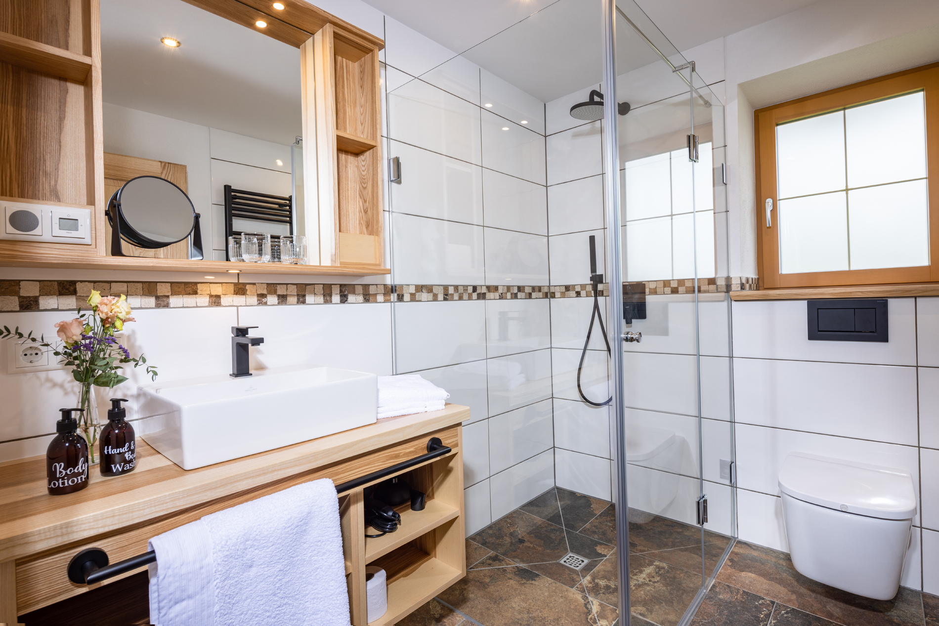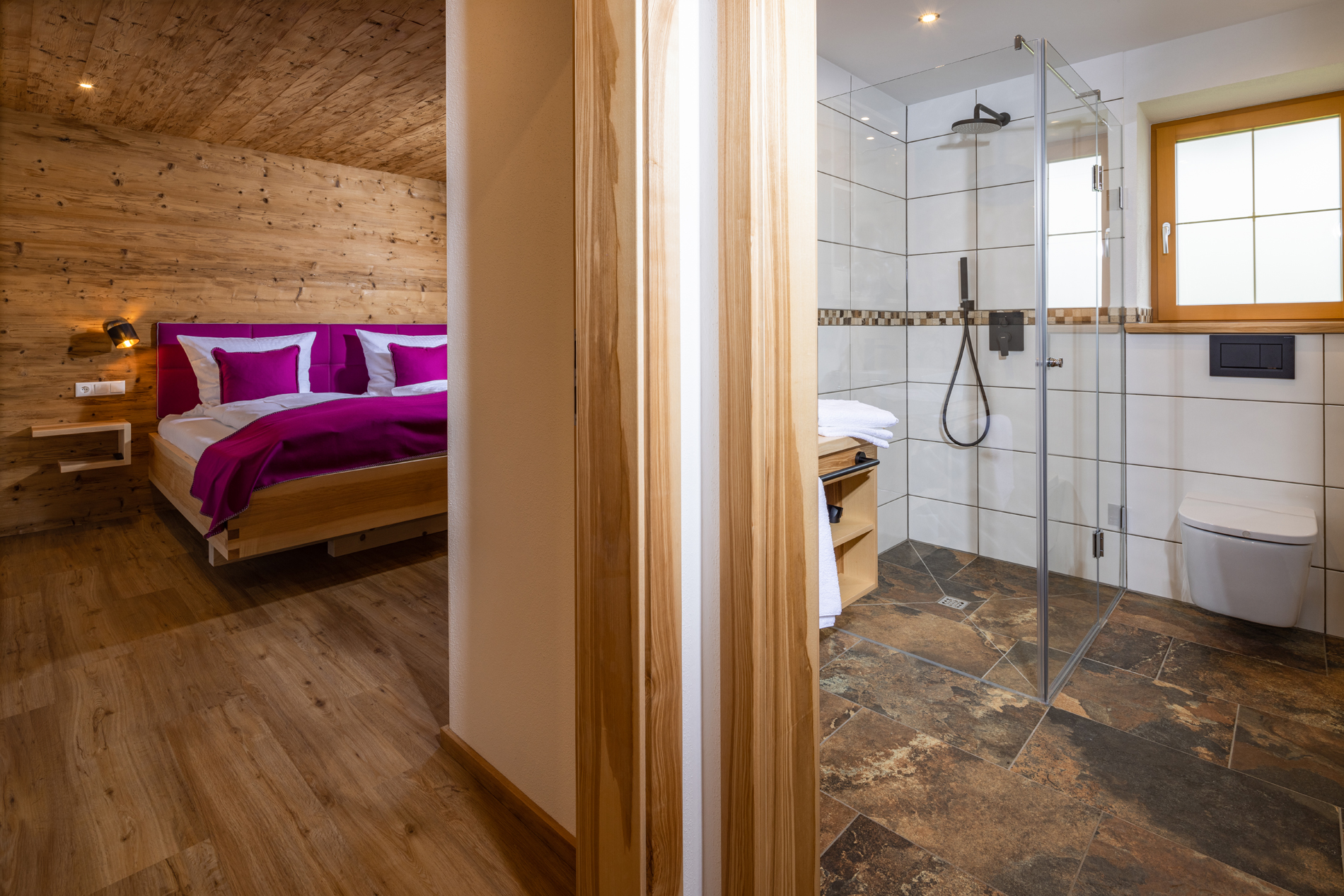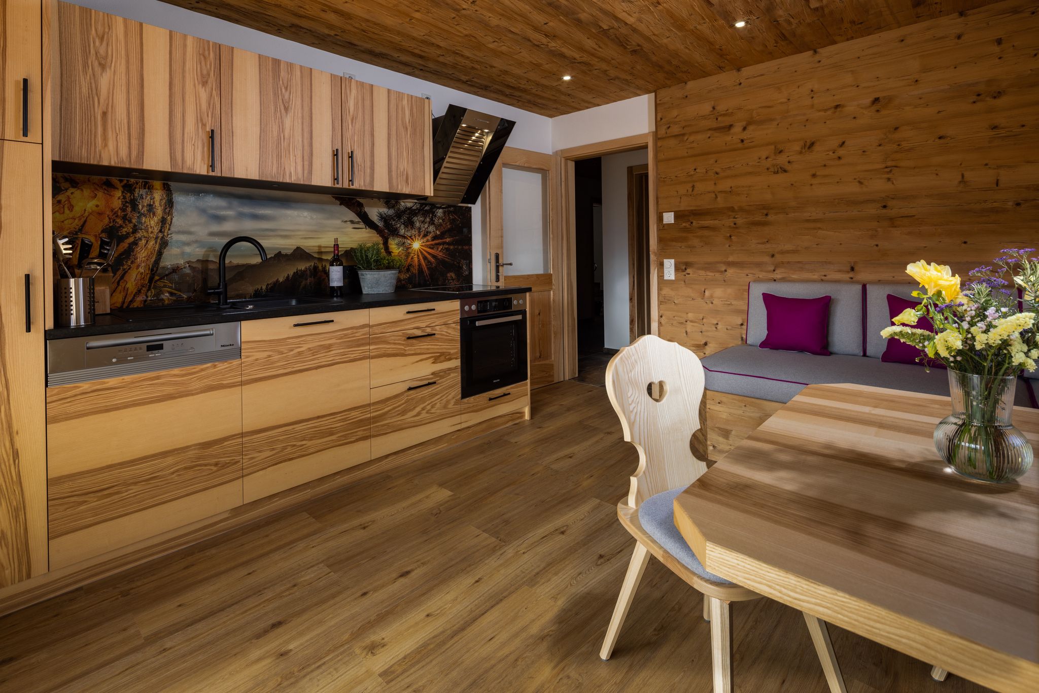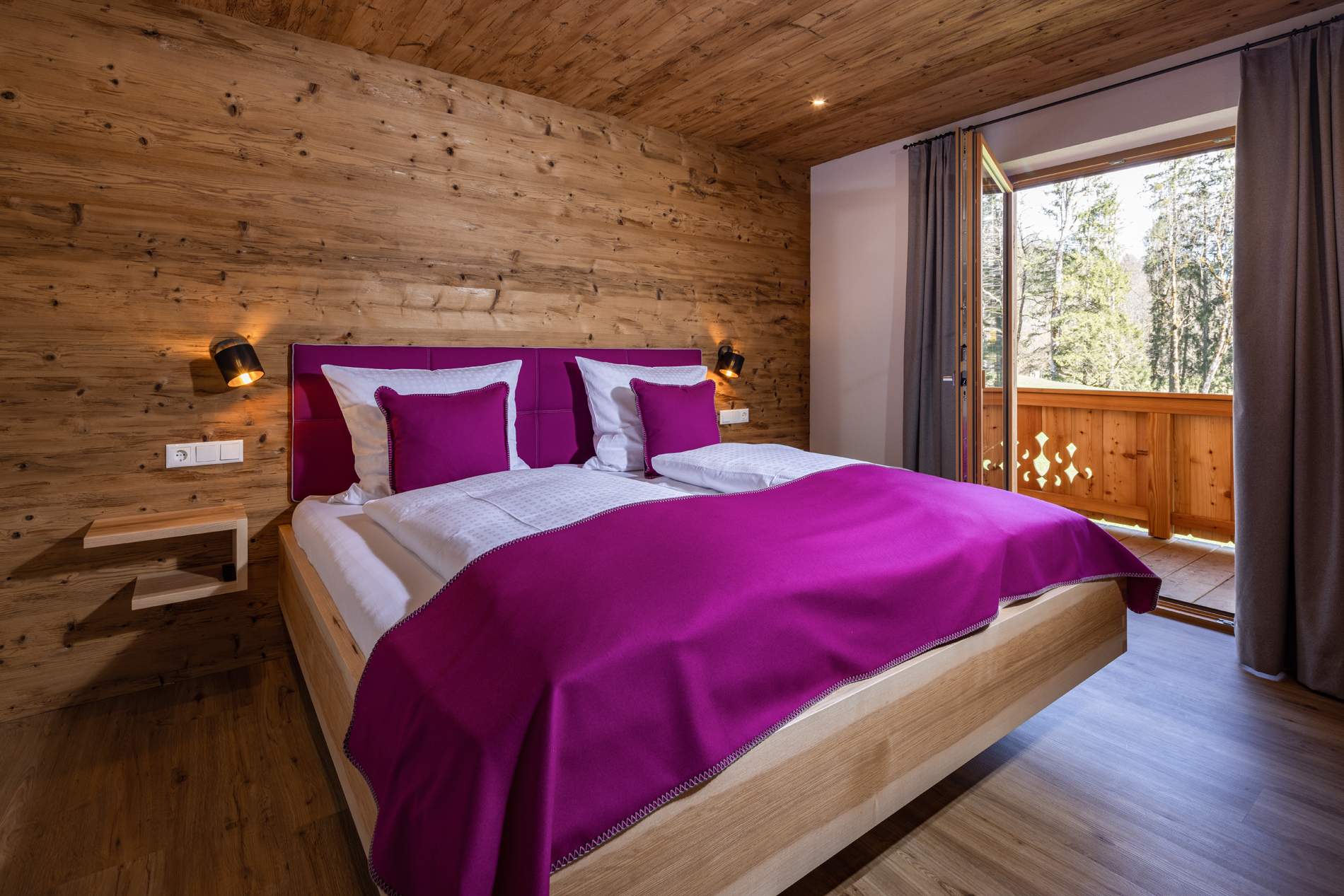 Die Ferienwohnung Morgenstern bietet mit einer Größe von etwa 50 qm Platz für bis zu 2 Personen. Die gemütlich eingerichtete Fewo besitzt einen großzügigen Ost- und Südbalkon mit Balkonmöbel, um die Tage im freien verbringen zu können. Sie verfügt über ein Bad und einem Schlafzimmer mit Doppelbett. Durch die großen Balkontüren kann man die herrliche Natur noch besser genießen. Im gesamten Wohn- und Schlafbereich wurden für ein gesundes und natürliches Raumklima heimische Naturmaterlialien wie Steinerloden, Baumwolle und heimische Hölzer verwendet. - Schlafzimmer mit Doppelbett, Sat-TV direktem Balkonzugang- Babybett als Zustellbett möglich- Bettdecken und Kissen aus Daunen und Federn - sonniger Südbalkon mit traumhaftem Bergblick vom Kehlstein und dem Watzmannmassiv bis zum Hochkalter und die umliegende Natur . - Badezimmer mit begehbarer Regendusche, Toilette, Schminkspiegel, Handtuchwärmer, Radio, Föhn.- offener Wohn-/Essbereich mit gemütlichem Sofa von einem ortsansässigen Raumausstatter bezogen mit feinstem Steienrloden, Essbereich aus Kernesche, Panoramaverglasung mit Blick in die umliegende Natur, Leseecke, Sat-TV, Panasonik-Kompaktanlage zum abspielen der Lieblingsmusik vom Smartphone über Bluetooth, USB und AUX-Eingang- Designerküche vom einheimischen Schreiner mit Miele-Geräten, E-Herd, Backofen, Kühlschrank mit Gefrierfach, Geschirrspüler, Wasser- und Eierkocher, Jura-Kaffevollautomat, Toaster, Steinarbeitsplatte- Hand-, Bade- und Geschirrtücher sind vorhanden, Betten sind überzogen.- Safe und kostenloses W-LAN