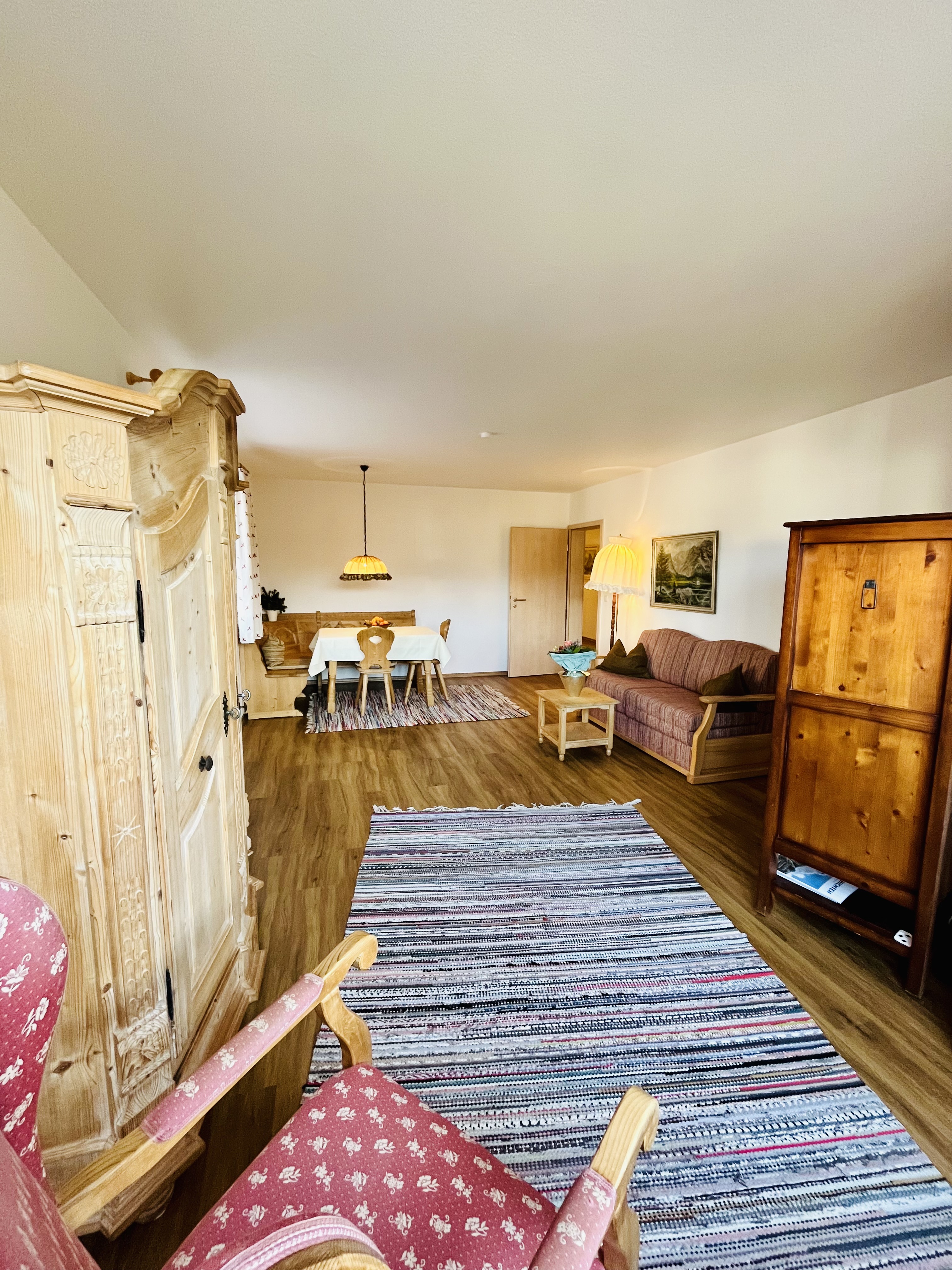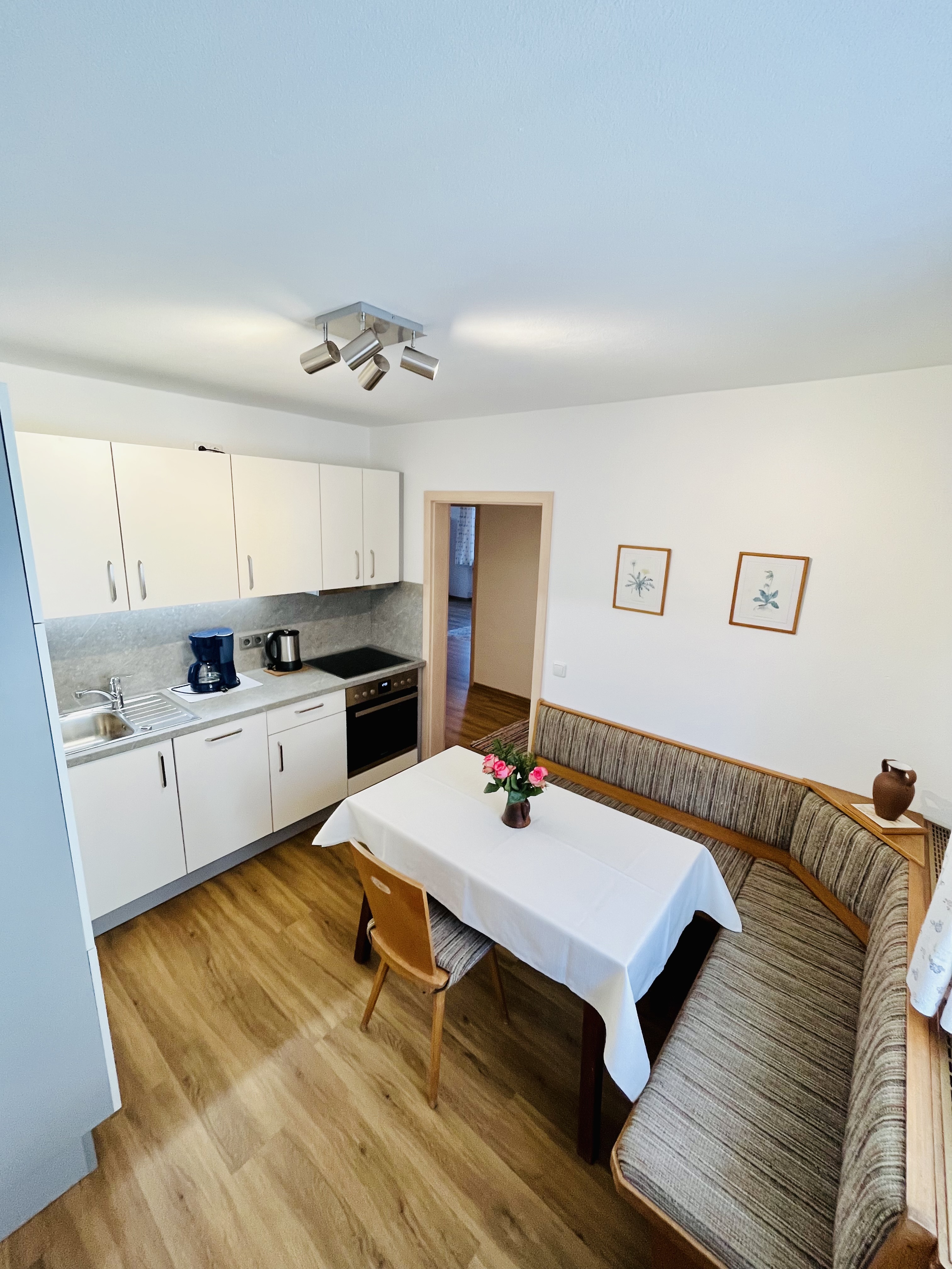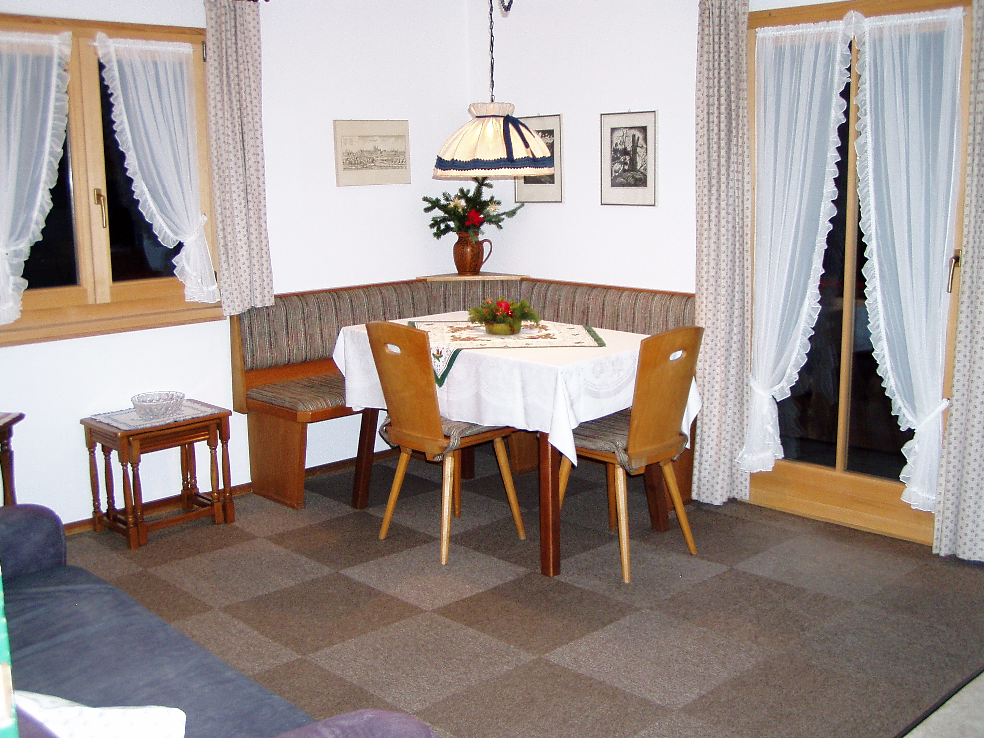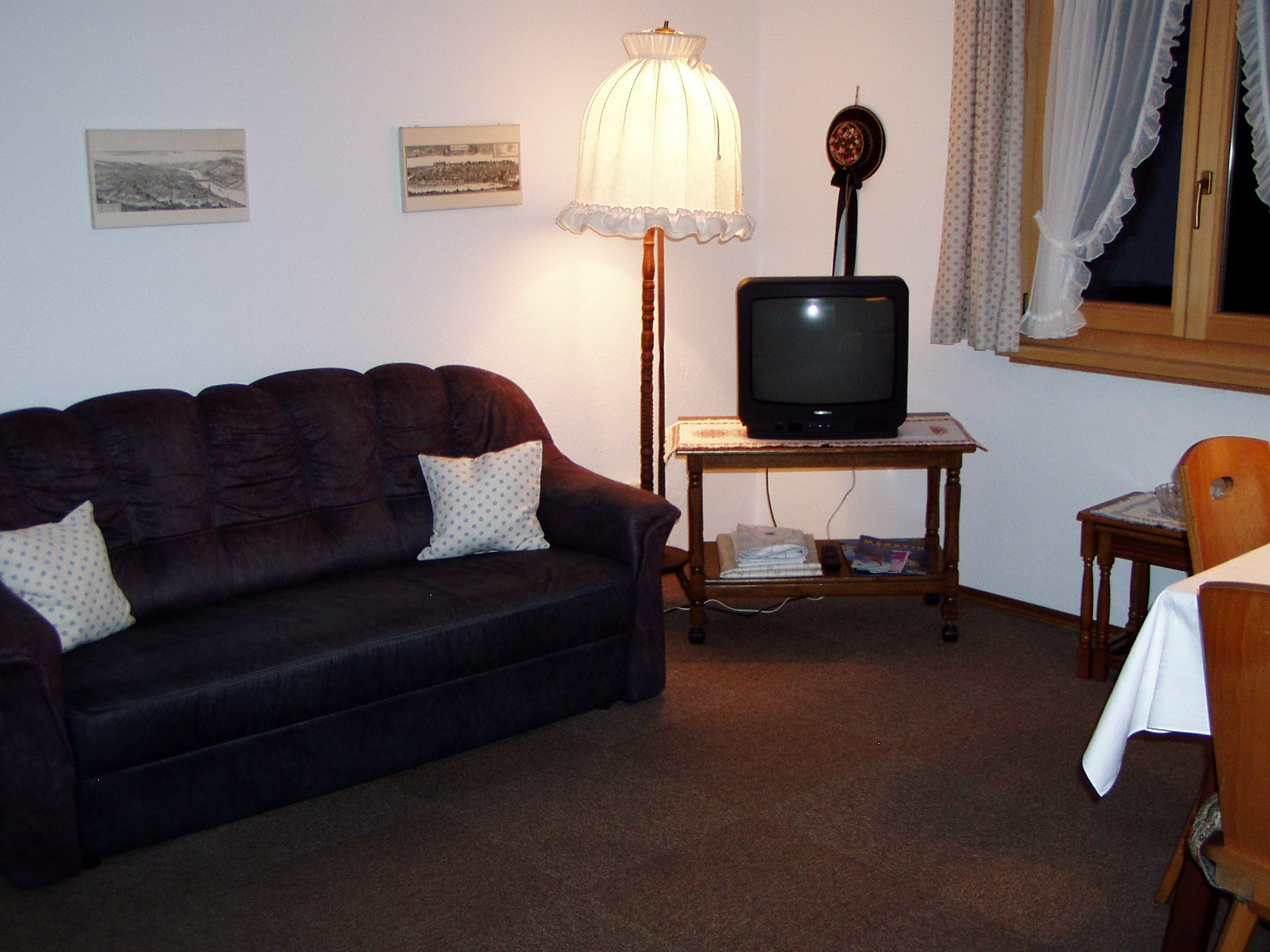 Die gemütliche Wohnung hat insgesamt ca. 54 qm, verfügt über zwei separate Schlafzimmer, div. elektronische Geräte (Toaster, Kaffeemaschine, Wasserkocher), TV und Du/WC.In dieser Wohnung (1. Obergeschoss) können Sie ganztags auf dem eigenem Balkon die Sonne und die herrliche Aussicht auf die gesamte Bergwelt genießen.