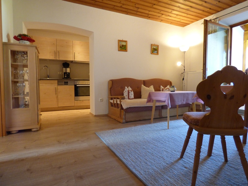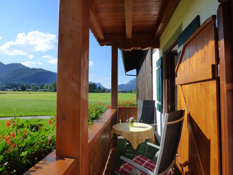 Die Ferienwohnung Kehlstein liegt im 1. Stock unseres Hauses und ist ca. 50 qm groß und verfügt über eine Wohnküche mit Essecke, ein Wohnzimmer, ein separates Schlafzimmer und ein Bad mit Dusche/WC. Ein großer überdachter Freisitz zur Ostseite und ein Balkon zur Westseite bieten einen herrlichen Panoramablick.