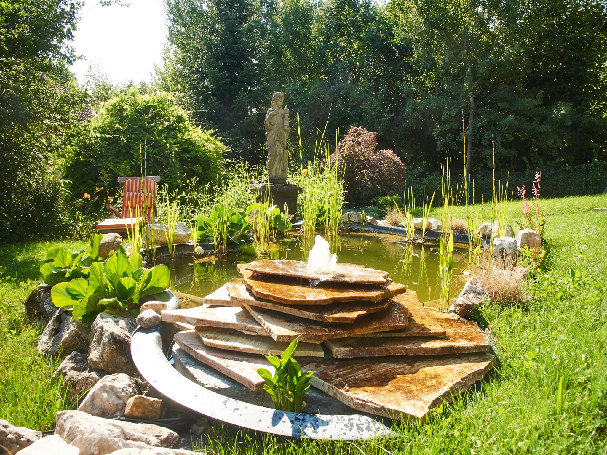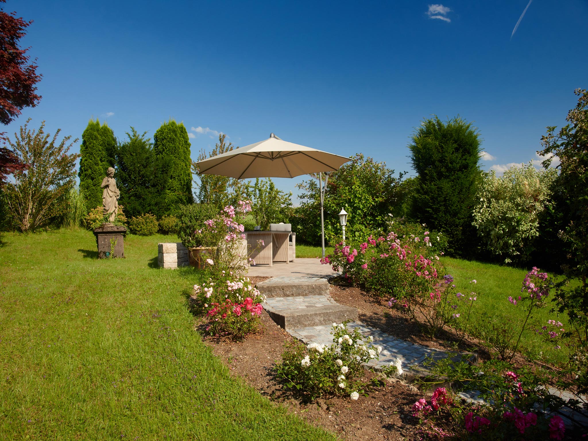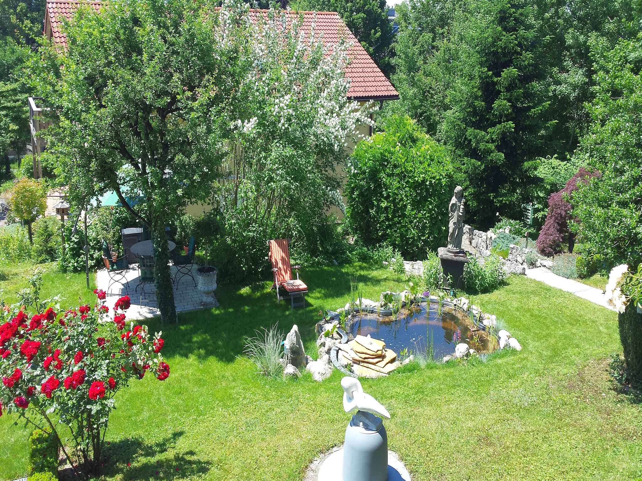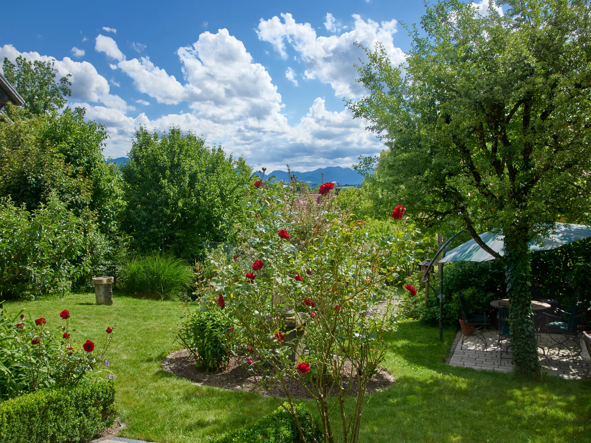 Besonderheiten im Haus Linde: Umfangreiche Serviceleistungen z.B. Frühstück und Brotzeiten auf Anfrage und gegen Aufpreis, Fitnessraum, Fahrradverleih, Safe, Stellplatz bzw. Garage für Auto u. Fahrräder und Wallbox zum Laden von E-Autos. Kühlschrank mit Gefrierfach, Fliegengitter. Nichtraucher, keine Haustiere. Kinder ab 7 Jahren. Fordern Sie unseren Hausprospekt an oder besuchen Sie unsere Homepage. Das Anwesen Linde mit zwei Premium-Ferienwohnungen liegt an einem sanften, sonnigen Hügel am Ortsrand von Bad Endorf mit traumhaftem Bergblick. Die Ferienwohnungen sind vom Deutschen Tourismusverband mit 5 Sternen ausgezeichnet und haben Studiocharakter mit hohen lichtdurchfluteten Räumen. Obwohl es nur wenige Minuten zum Zentrum mit vielen interessanten Geschäften und Restaurants sind, finden Sie bei uns die Ruhe und Abgeschiedenheit, die man sich für einen Erholungsurlaub wünscht. Entfernung zum Ortszentrum ca. 5 Min, zum Kurzentrum ca. 10 Min. zu Fuß. In unserem großen, parkähnlichen Garten, angelegt im mediterranen Stil mit Pavillon, Gartenteich und verschiedenen Terrassen, finden Sie immer einen ruhigen Platz zum Träumen und Entspannen. Bad Endorf ist idealer Ausgangspunkt für Wanderungen und Radtouren in die Umgebung oder besuchen Sie unsere Chiemgau Thermen. Unser Sommerspecial am Bayerischen Meer: Lassen Sie sich von der erfahrenen Skipperin, Lieselotte Linde, den anderen Chiemsee mit der hauseigenen Segelyacht Tangaroa (knapp 7 m Länge) zeigen und genießen Sie die unvergleichlich schöne Natur bei einer Brotzeit oder einer Kaffeepause an Bord! An Stellen, die nur vom Wasser aus erreichbar sind, können Sie unbeschwert ins kühle Nass springen.