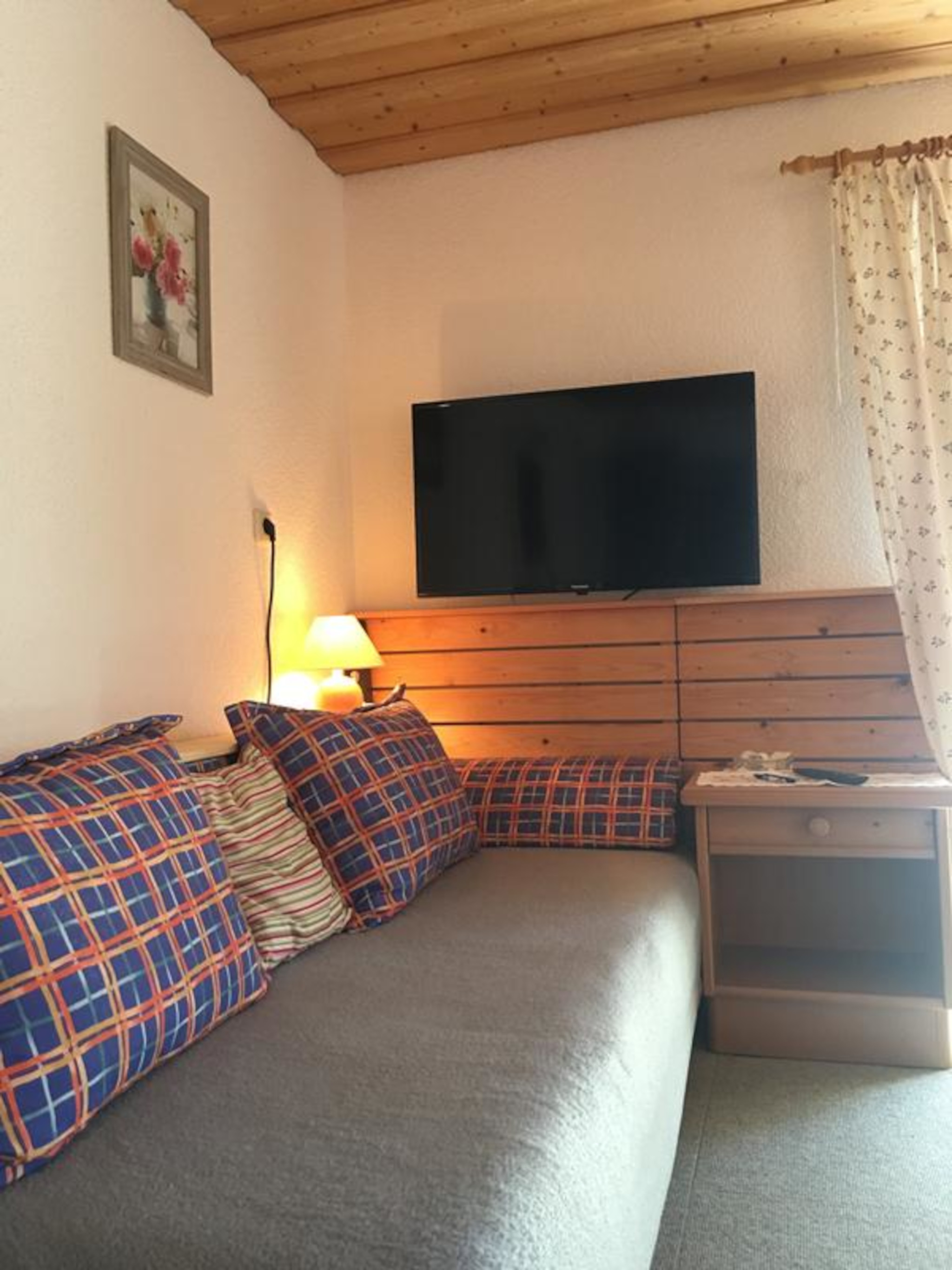 Die gemütlich eingerichtete ca. 65 qm große Ferienwohnung bietet Platz für 2-5 Personen und verfügt über 2 separate Schlafzimmer mit TV. Außerdem mit zweimal Dusche und WC, eine Wohnküche mit Spülmaschine, TV und Couchecke, süd- und westseitiger Balkon von allen Zimmern zu begehen. Neben einem Kinderbett stellen wir auch gerne einen Hochstuhl zur Verfügung.