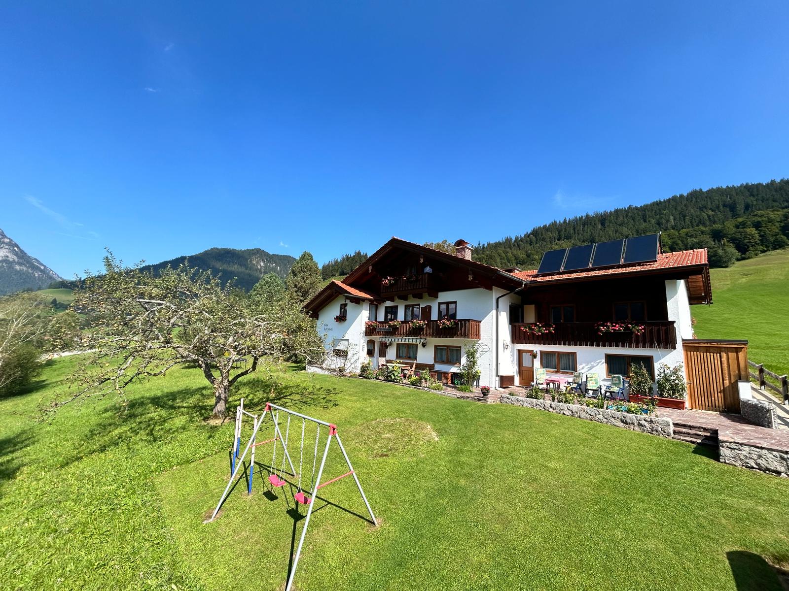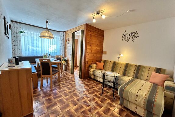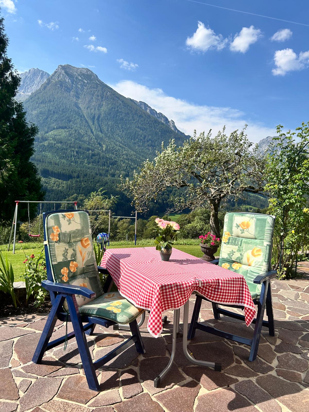 Unsere Ferienwohnung ist nach Süden ausgerichtet und bietet Platz für 1-4 Personen. Sie besteht aus einem separaten Schlafzimmer, einem Wohnraum mit sehr guter Schlafgelegenheit, einer komplett eingerichteten Küche, Dusche/WC, sowie einer Terrasse, von der Sie eine schöne Aussicht auf die Ramsauer Berge haben.