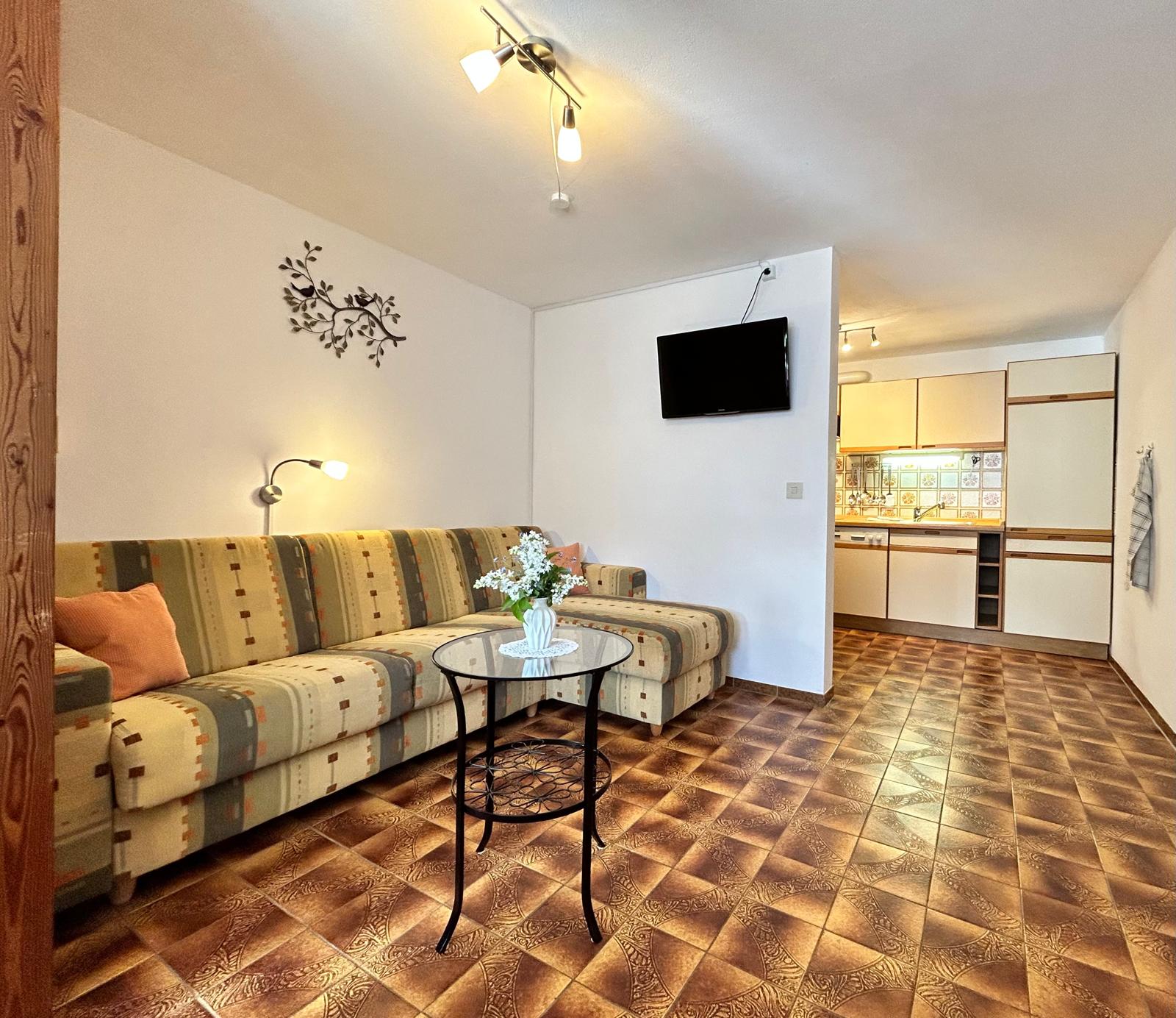 Unser Haus liegt in sonniger, mittlerer Lage mit herrlichem Blick auf die Berge.Wir bieten Ihnen eine freundlich eingerichtete Ferienwohnung für 1 - 4 Personen, nach Süden ausgerichtet. Sie besteht aus einem Wohnraum mit komfortabler Schlafgelegenheit, einer komplett eingerichteten Küche, einem separatem Schlafzimmer, einer großen Dusche mit WC und einer Terrasse mit Sitzmöglickeit. Von unserem Haus aus können Sie schöne Wanderungen, Ausflüge, Radtouren und Vieles mehr unternehmen.