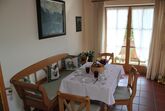 Auf 65qm sind die Räume ideal angeordnet: 1 Schlafzimmer mit Doppelbett, das groß genug ist, um evtl. ein Kinderbettchen aufzustellen; das Wohnzimmer ist ein Mehrfunktionsraum mit ausziehbarer (Doppelliege-)Couch, 2 bequemen Sesseln und Tisch (kann also auch als 2. Schlafzimmer verwendet werden) außerdem bieten eine weitere Sitzbank, Stühle und Esstisch den idealen Rahmen für ein ausgiebiges Frühstück oder das Essen in der Familienrunde. In der kleinen Küche ist voll ausgestattetmiteinem kleinen Essplatz für das Frühstück. Das Bad ist kombiniert mit Dusche und WC und ist großzügig mit Schränken und Ablagen, sowie Fön und Kosmetikspiegel ausgestattet. Die Zimmer liegen zur Südseite und vom großen Balkon ist der Blick auf den Watzmann genau das, was man sich von einem Urlaub in Berchtesgaden erwartet. Hier können Sie den ganzen Tag auf Liegen oder Gartenmöbeln die Sonne genießen, hören das Rauschen der Königsseer Ache und blicken auf die sattgrünen Kastanienbäume im Garten.