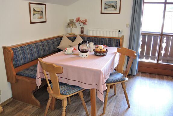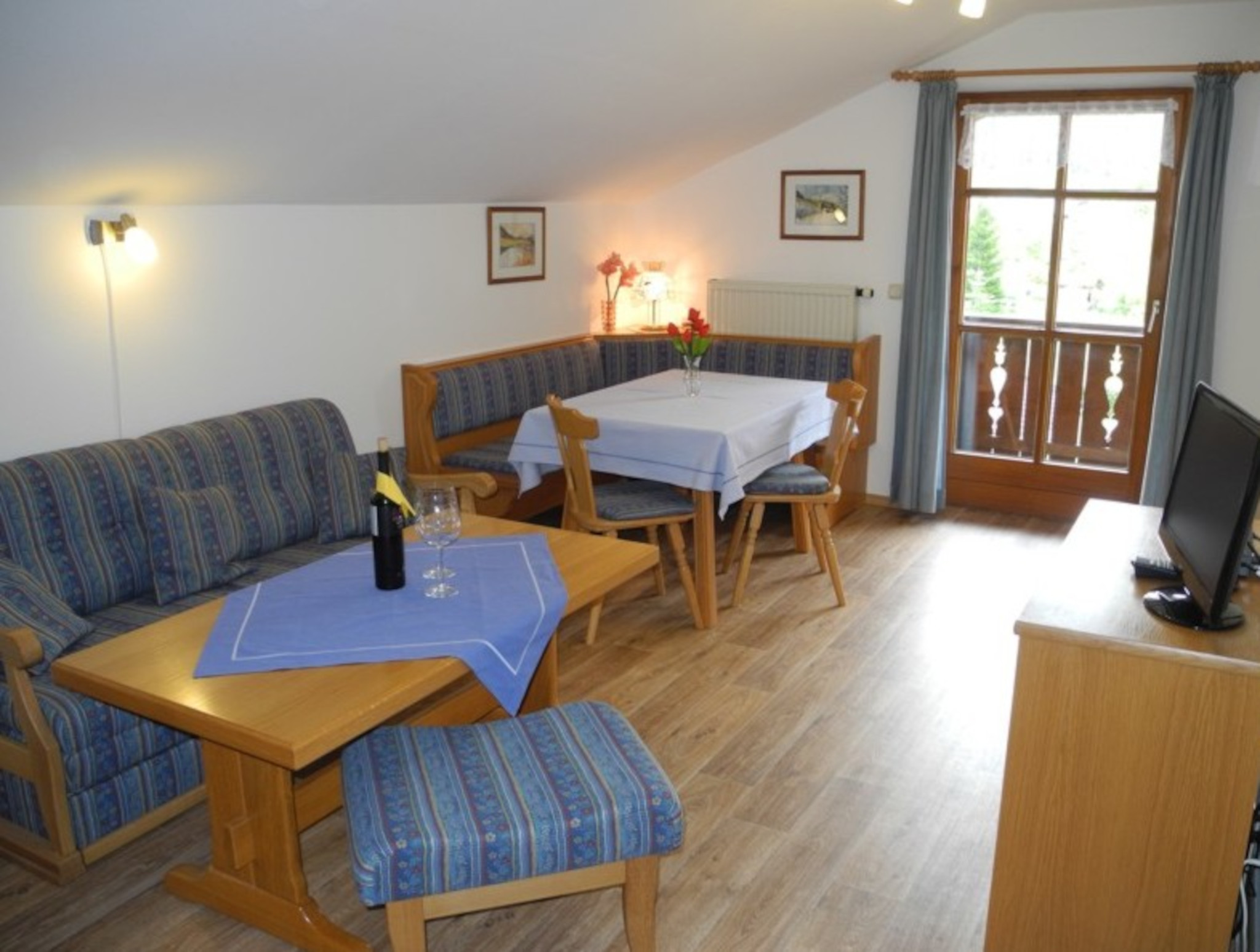 Unser gepflegtes, familiär geführtes Haus liegt in sehr ruhiger, jedoch zentraler Lage. Unsere Wohnungen sind im ländlichen Stil möbliert und verfügen alle über separate Schlafzimmer, Balkone und SAT-TV. Kinderbett sowie Kinderhochstuhl. Waschmaschine und Trockner auf Anfrage gegen Gebühr vorhanden. Terrasse mit Sitzgarnitur und Grill können jederzeit genutzt werden. In wenigen Gehminuten erreichen Sie das Ortszentrum mit Gaststätten und Einkaufsmöglichkeiten sowie das Freibad, Kneippanlagen und Solegradierwerk. Der Königsseer Fußweg führt nahe am Haus vorbei. Er lädt zu Spaziergängen zum Königssee oder nach Berchtesgaden ein und ist Ausgangspunkt für viele Wanderungen. Im Winter sind Sie in wenigen Autominuten an der Skipiste am Jenner. Die Langlaufloipe erreichen Sie zu Fuß. Wir stellen unseren Gästen kostenloses WLAN zur Verfügung.