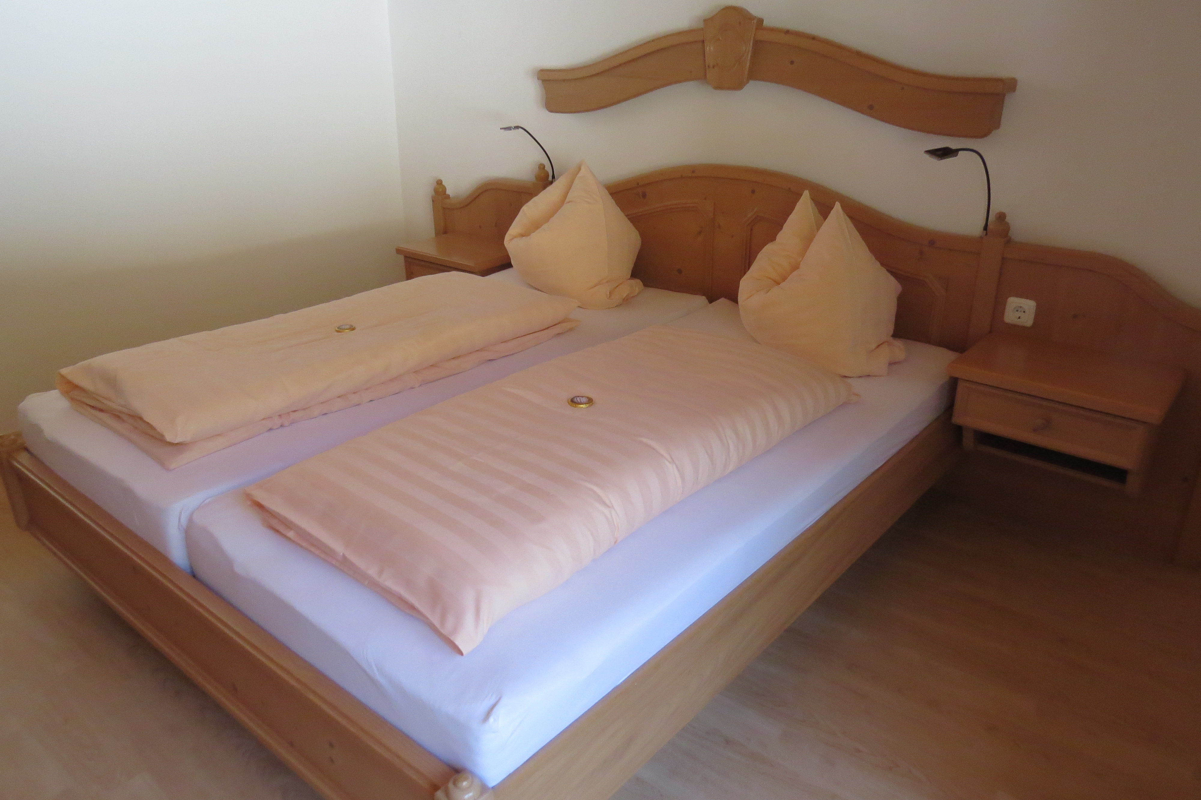 In unserer großen Ferienwohnung Rauher Kopf können Sie sich auf 65 m² so richtig wohl fühlen. Die gemütlich und hell eingerichtete Wohnung bietet Platz für maximal 4 Erwachsene und 1 Kind und verfügt über 2 getrennte Schlafzimmer, ein Badezimmer mit Dusche, einen Wohn- und Essbereich, eine Küchenzeile und einen Balkon. Die Küche ist ausgestattet mit einem E-Herd mit 2 Kochplatten, einem Kühlschrank, einer Kaffeemaschine, einer Mikrowelle, einem Toaster, einem Wasserkocher und einem Eierkocher. Töpfe, Geschirr und Besteck sind selbstverständlich auch vorhanden.Die Schlafzimmer sind mit einem Doppelbett bzw. zwei Einzelbetten ausgestattet. Im Wohnzimmer befindet sich noch eine gemütliche Schlafcouch auf der noch 1 weiteres Kind Platz finden kann. Auch ein Sat-TV Flachbildfernseher ist vorhanden, sowie kostenloses W-Lan. Alle Wohnungen sind mit Bettwäsche und Handtücher ausgestattet. Für Kinder stellen wir bei Bedarf kostenlos ein Babybett und einen Hochstuhl zur Verfügung.Die Wohnung befindet sich im 2. Stock.