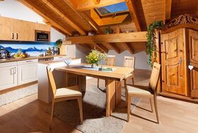 Unsere großzügige Ferienwohnung hat 90 m² und bietet reichlich Platz für 4 Personen (Zustellbetten für weitere 2 Personen möglich), jeweils Dusche/WC. Gemütlicher Wohnraum mit Couch und extra Esstisch, komfortable, moderne Küchenzeile, hell und freundlich. Extra großer Aussichtsbalkon mit Blick zum Watzmann.