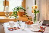 Im Zimmer ist noch ein kleiner Esstisch mit zwei Stühlen und ein Lesestuhl mit Leselampe. Ausgestattet ist das Zimmer mit einem Fernseher, Radiowecker, Kühlschrank, Wasserkocher, Kaffeemaschine und einem Tablett mit Geschirr, Gläsern und etwas Besteck. Bitte beachten Sie, im Zimmerpreis ist kein Frühstück inklusive! Im Bad ist ein Fön vorhanden. In unserem großen Garten mit vielen Sitzplätzen, Sonnenliegen und Spielplatz ist für jeden etwas dabei.
