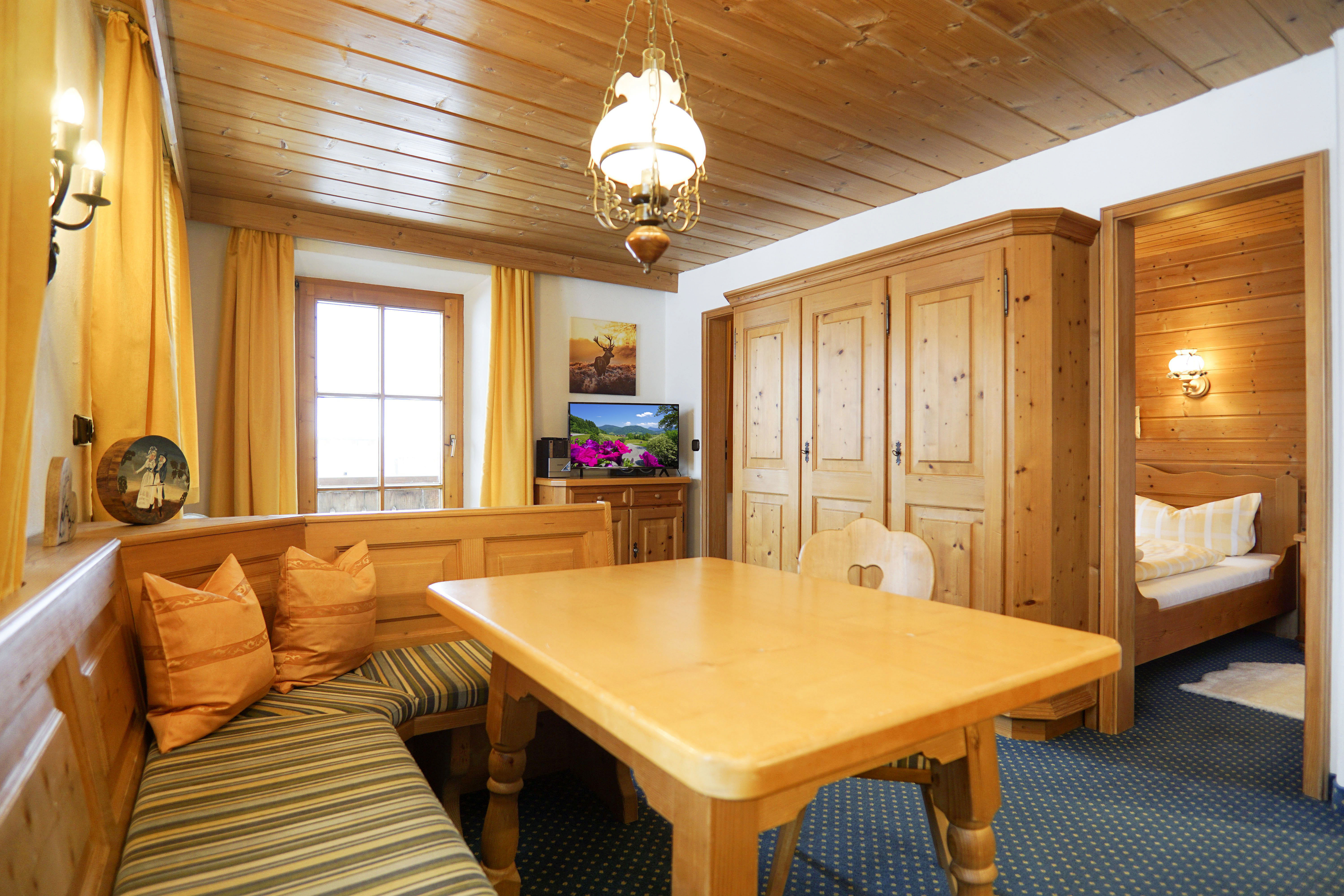 Einfach traumhaft: Hier am Sonnenhang hoch über Ruhpolding und nur 20 Gehminuten vom Ortskern entfernt. Wir bieten Ihnen gemütliche Ferienwohnungen mit viel Holz, rustikaler Möblierung und edlem Komfort: Die Wohnungen bestehen aus 2 Zimmern, Küche und Bad. Sie verfügen über einen separaten Eingang, einen Balkon oder eine Terrasse und teilweise auch Kachelofen. Zur komfortablen Ausstattung gehört auch Sat-TV, Telefon, Geschirrspüler und Mikrowelle. Parkplätze und WLAN sind in der Unterkunft gratis vorhanden. I