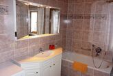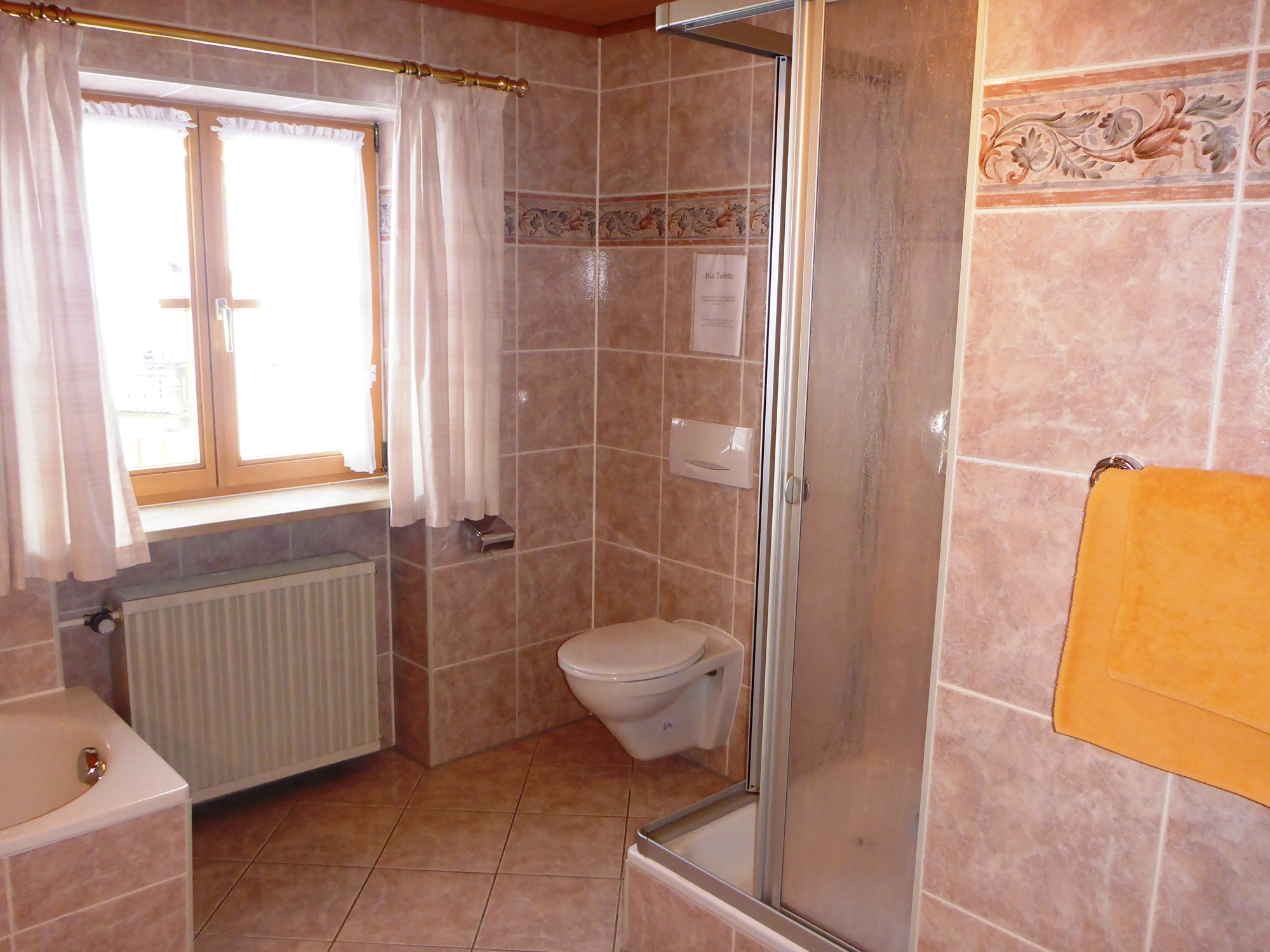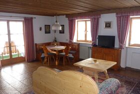 Große Ferienwohnung mit bester Aussicht auf das herrliche Bergpanorama, ca. 100 m², 1. Stock/Südosten, mit großem Eckbalkon. Großzügiges Wohnzimmer mit Kachelofen, Couch, Zweisitzer und Eckbankgruppe. Separate Küche mit Spülmaschine, Ceran-Kochfeld und Mikrowelle usw., Badezimmer mit Badewanne, separater Dusche und WC, sowie Trockner und Waschmaschine.