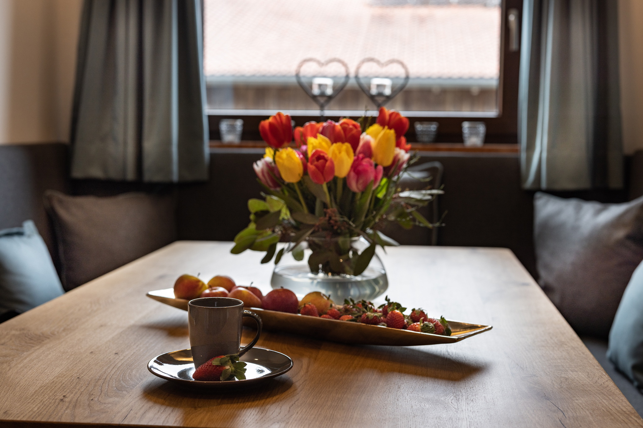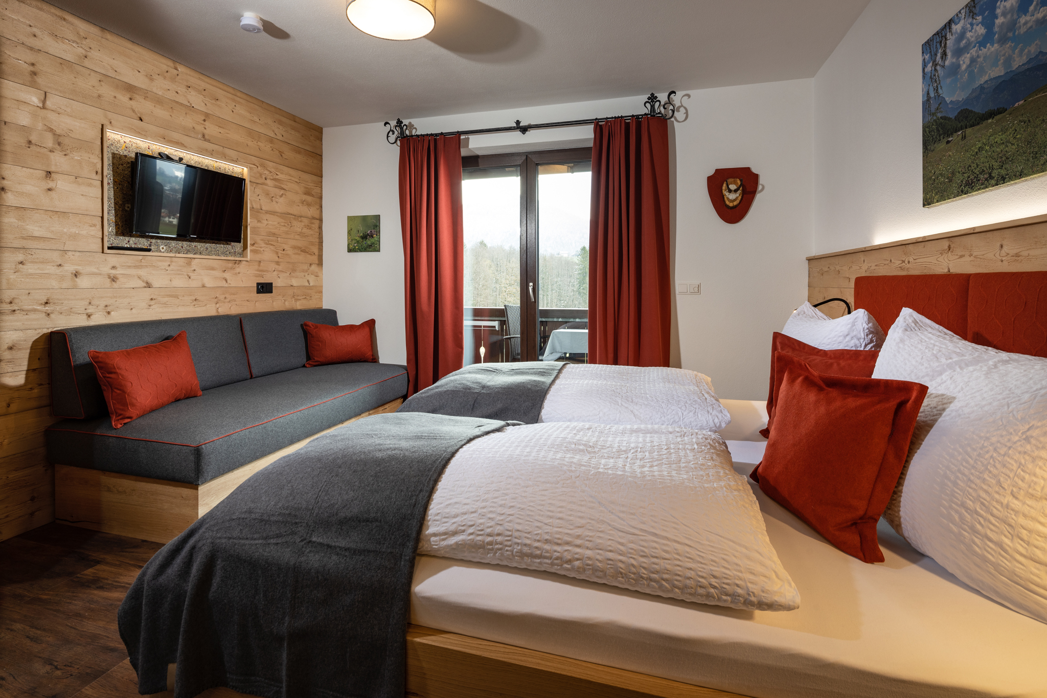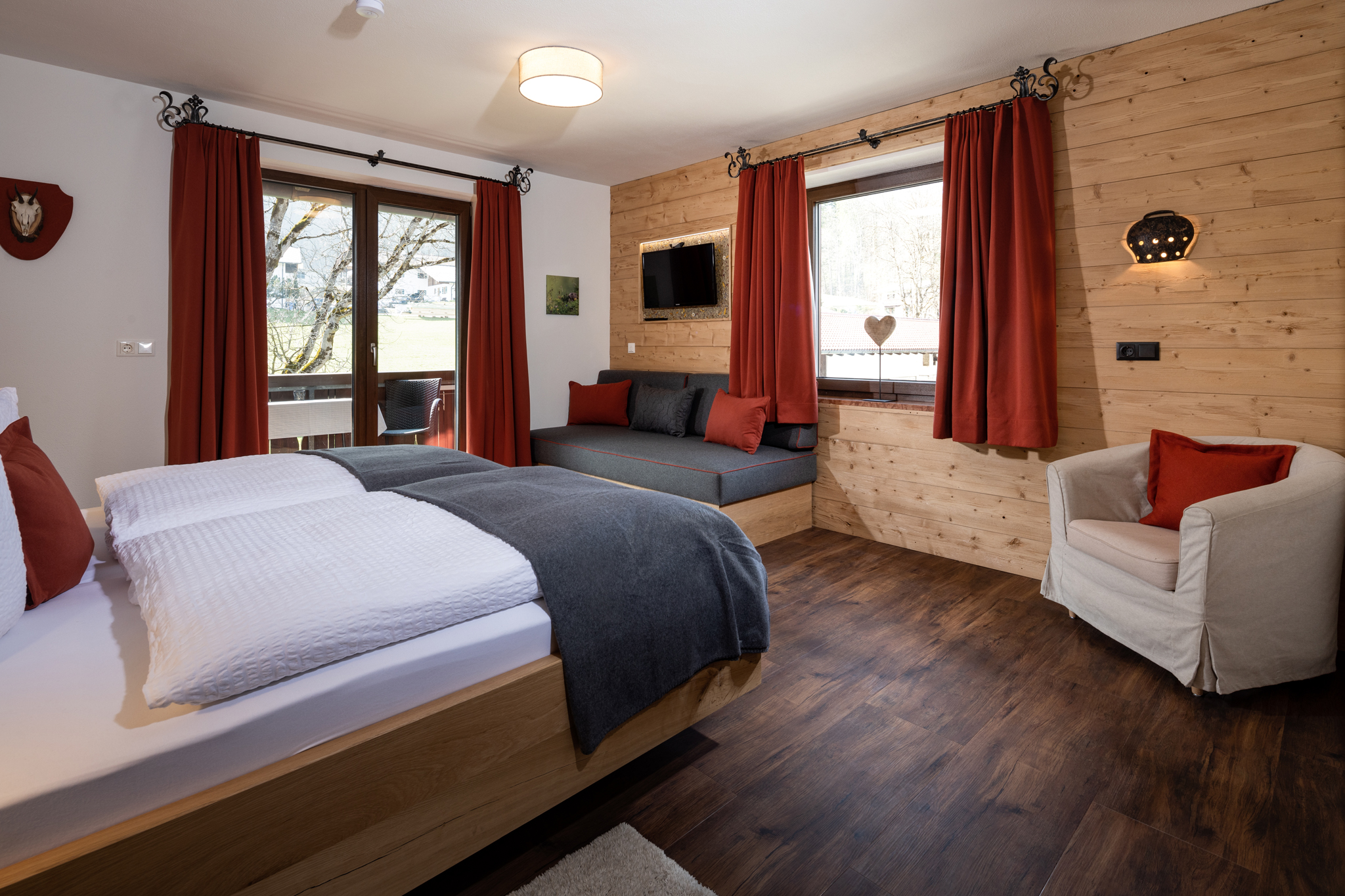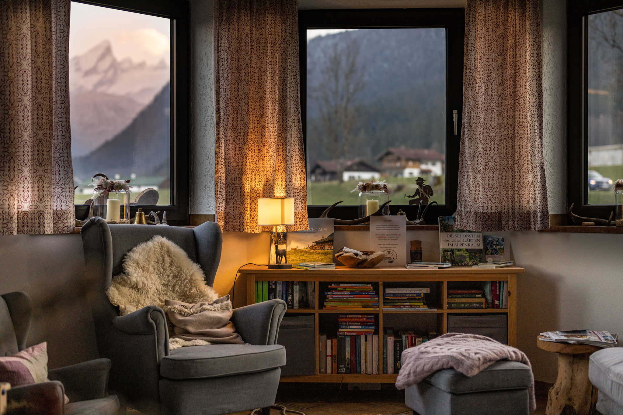 Sie suchen Erholung in einer Ferienwohnung, die komplett ausgestattet ist, bei traumhaftem Bergpanorama inmitten der Natur liegt und von der aus Sie ideal Ihre Ausflugsziele erreichen? Dann sind Sie bei uns richtig!Unsere Ferienwohnung Alpendistel eignet sich perfekt für den Urlaub als Familie oder mit Freunden und bietet für Sie:- Verfügbarkeit bis zu 6 Personen- zwei Balkone mit herrlichem Bergblick- zwei separate Schlafräume mit Massivholzbetten und jeweils einer bequemen Schlafcouch und Flachbildfernseher- zwei separate Badezimmer mit Regendusche- eine komplett ausgestattete Küchenzeile mit Herd, Backofen, Kühlschrank, Geschirrspülmaschine, Kaffeemaschine, Wasserkocher und Toaster- eine gemeinsame Wohnstube mit gemütlicher Eckbank- eine Fußbodenheizung, die für angenehme Wärme sorgt- kostenlose WLAN-Nutzung- Hand- und Geschirrtücher, sowie Bettwäsche- Wäscheständer und Bügelbrett, sowie Wäscheservice auf Anfrage- täglicher Semmelservice und großzügige Getränkeauswahl im Haus- wöchentlicher WäschewechselAlle Möbel wurden exklusiv von einer heimischen Schreinerei gefertigt.