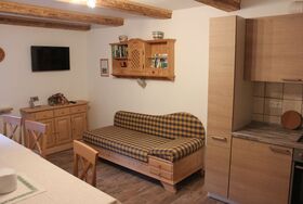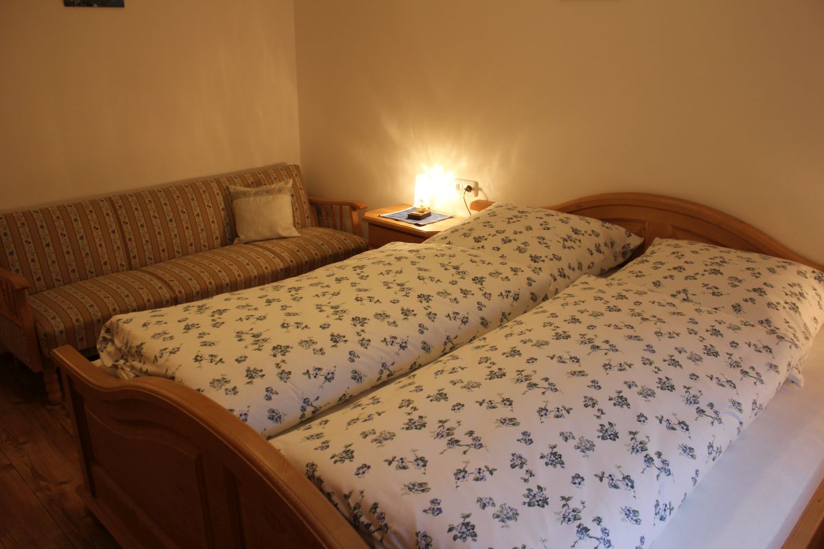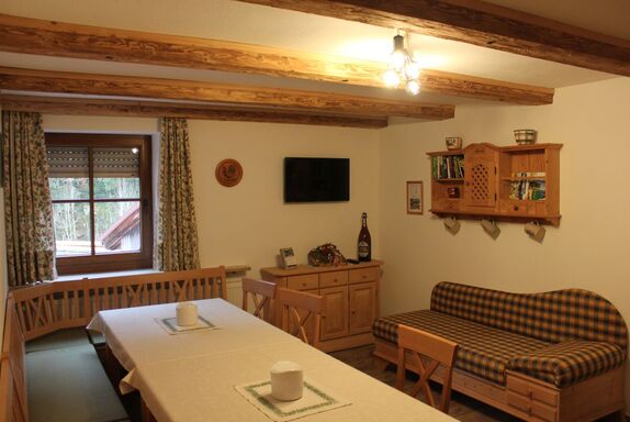 Unsere neu renovierte und liebevoll eingerichtete Ferienwohnung lädt zu einem entspannten und erholsamen Urlaub am Fuße unseres Hausberges, des Teisenbergs ein. Über den separaten Eingang und nur 1 Stufe erreichen Sie die großzügige Wohnung im 1.OG fast barrierefrei. Ein Abstellraum und ein separates WC machen die Unterkunft komplett. In der Küche ist genügend Platz am Esstisch, der auch geteilt werden kann. Mit Geschirrspüler und Tiefkühlfach ist auch die Küche komplett ausgestattet. Die beiden getrennten Schlafzimmer haben jeweils ein Zusatzbett, ein Kinderbett kann auch zur Verfügung gestellt werden. In den Sommermonaten können Sie die Ruhe auf der Liegewiese oder dem Balkon genießen. Ein gesundes und reichhaltiges Frühstück können Sie bei uns jederzeit dazubuchen.