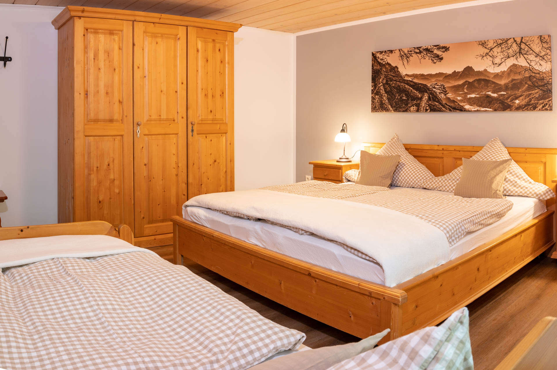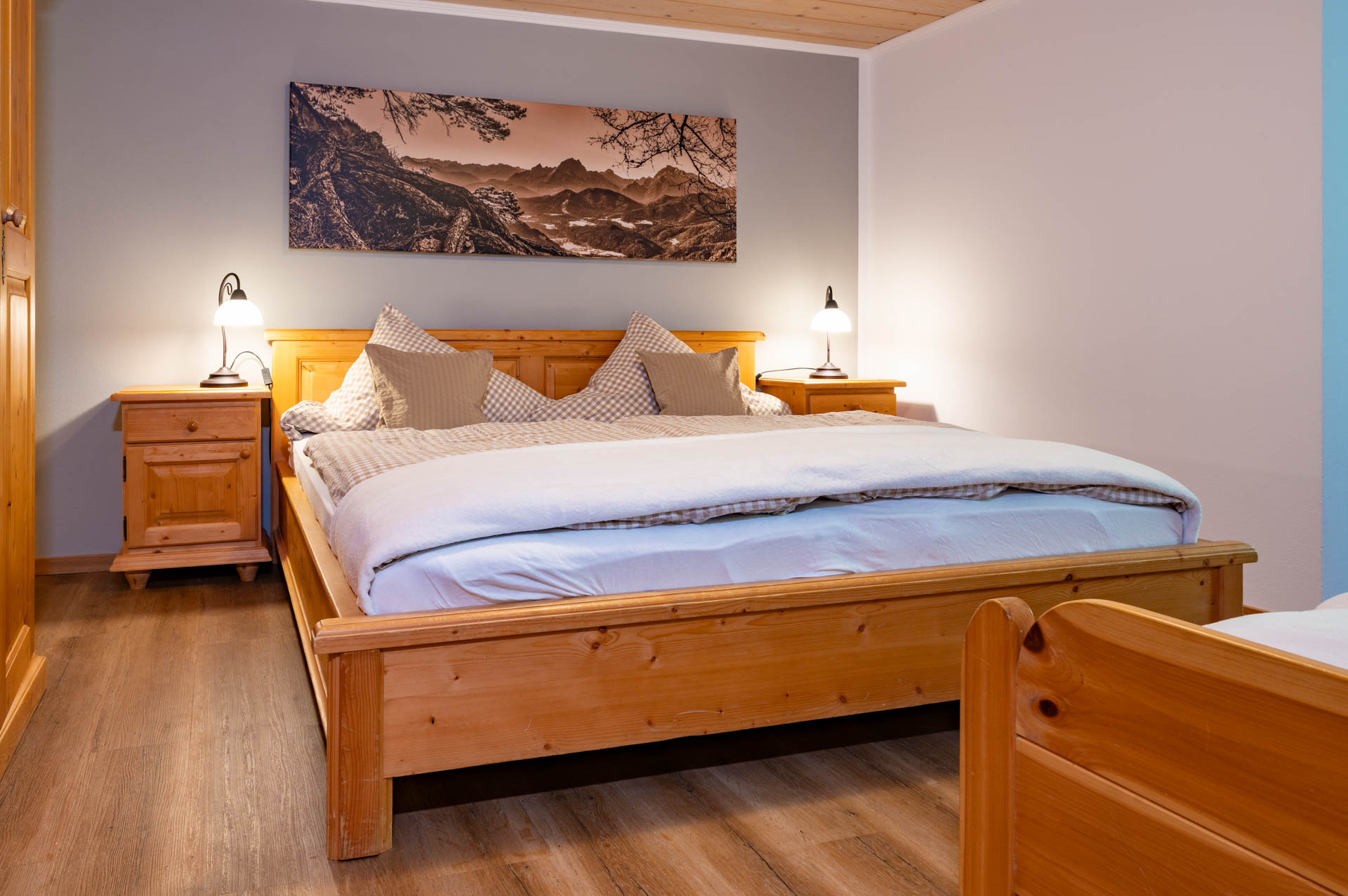 • Schlafzimmer mit Doppelbett und Dusche/WC