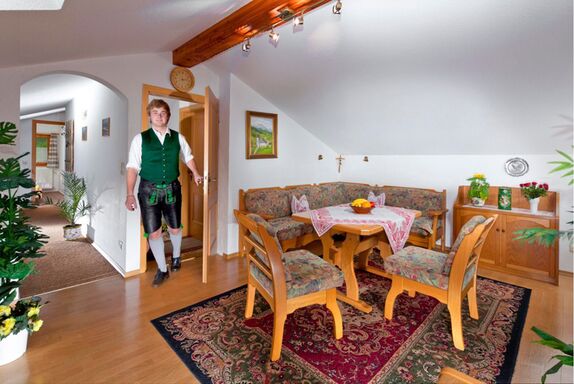 Unser gepflegtes Haus in sonniger, ruhiger Alleinlage mit herrlichem Bergpanorama bietet Ihnen Platz für Ihren erholsamen und entspannten Urlaub. Genießen Sie Ihren Urlaub in unseren komfortablen 40 bis 60 Quadratmeter großen Ferienwohnungen mit Balkon . Viele Sehenswürdigkeiten , Seilbahnen und Gasthäuser sind in unmittelbarer Nähe. Wanderwege starten direkt am Haus und in der unmittelbaren Umgebung. Die nächste Bushaltestelle ist nur 10 Gehminuten entfernt. Rund um das Haus, laden ebenso gemütlichen Sitz-Liegegelegenheiten, sowie die große Spiel- und Liegewiese zum Verweilen ein. Ein Grill mit Sitzecke steht Ihnen ebenfalls zur Verfügung. Die Wohnküchen sind ausgestattet mit TV/ CD- Radio, Kaffeemaschine, Elektroherd, Eier- und Wasserkocher, Toaster, Kühlschrank mit Gefrierfach, sowie reichhaltigem Eß- und Kochgeschirr und Ecksofa.Die größeren Wohnungen haben auch eine Spülmaschine.