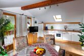 Unsere gemütliche Mansardenferienwohnung ist ausgestattet mit zwei Schlafzimmern, einer großen Diele, einem geräumigem Badezimmer mit Dusche, großer Wohnküche mit Spülmaschine , TV/Radio und einem SSW-Balkon mit herrlichem Bergblick. Die Ferienwohnung Untersberg bietet ein Schlafzimmer mit einem Doppelbett, sowie ein Schlafzimmer mit zwei Einzelbetten.