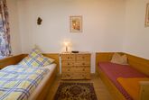 Die Ferienwohnung 2 befindet sich im Erdgeschoss und bietet mit ihren 65 m² Platz für bis zu drei Personen. Die Wohnung verfügt über zwei separate Schlafzimmer (mit einem Doppel- und einem Einzelbett), ein Wohnzimmer, eine voll ausgestattete Küche und Dusche/WC. Von Ihrer großzügigen Terrasse haben Sie einen direkten Zugang in den Garten.