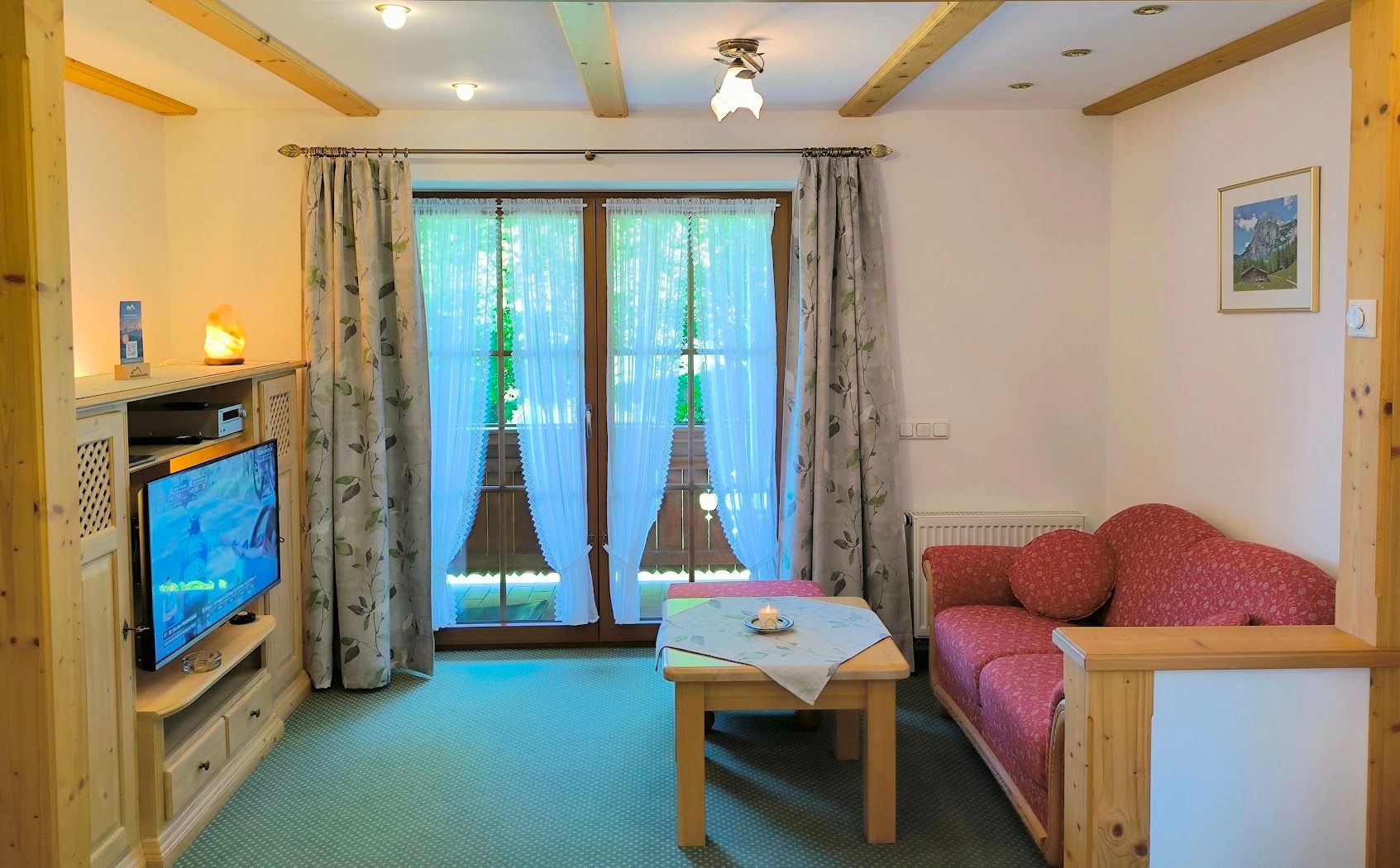Unsere Ferienwohnung 2 (30 m²) ist eine 3 Sterne Wohnung, die keine Wünsche offen lässt. Frühstücken Sie in Ruhe auf der glasüberdachten Veranda und genießen Sie das Bergpanorama mit Hochkalter, Reiteralpe und Lattengebirge. Der Wohn-Schlafbereich ist mit Naturholzmöbel, Doppelbett, Wohnzimmerschrank, Sofa, Sat-TV und Stereoanlage, ausgestattet. Eine separate Küche mit Tisch und Bestuhlung, vervollständigen die gemütlich eingerichtete Wohnung. Nutzen Sie den kostenlosen W-LAN-Hotspot für Ihre Internet-Aktivitäten.