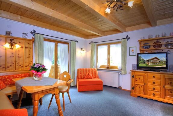 Unser Haus liegt ruhig, sonnig und doch zentral. Die Wohnungen sind mit viel Holz im bayerischen Stil eingerichtet und bieten Platz für 2 Personen. Genießen Sie die ruhige Lage und ein herrliches Bergpanorama auf dem Balkon oder unserer Terrasse. Zum Entspannen steht Ihnen eine Sauna mit Ruheraum, ein Infrarotsessel und Fitnessgeräte zur Verfügung. In wenigen Gehminuten erreichen Sie die Tourist-Information (Haus des Gastes), das Gradierwerk mit Kneippanlage und viele Gaststätten. In unmittelbarer Nähe befindet sich die Bushaltestelle. Nach einer kurzen Gehzeit von ca. 20 Minuten erreichen Sie den Königssee sowie die Jennerbahn. Im Winter ist auch die Langlaufloipe zur Fuß erreichbar. Gerne stehen wir Ihnen natürlich persönlich mit Ratschlägen für Ihre Aktivitäten zur Verfügung.