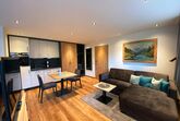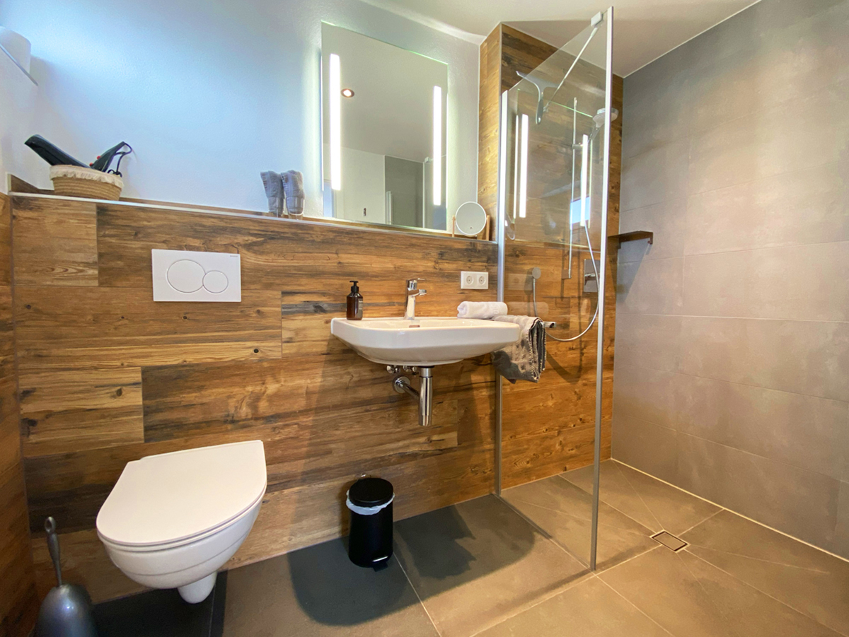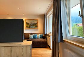 Besondere EG-Ferienwohnung im alpinen lifestyle mit schöner Sonnenterrasse Süd/West, Wohn-Schlafzimmer, EBK/Spülmaschine/Ceranfeld/Backofen/Eisfach, moderne Dusche/WC, Boxspringbett, TV drehbar, Zimmersafe, Unternberg- und Hochfellnblick, Highspeed-Internet via Wlan.