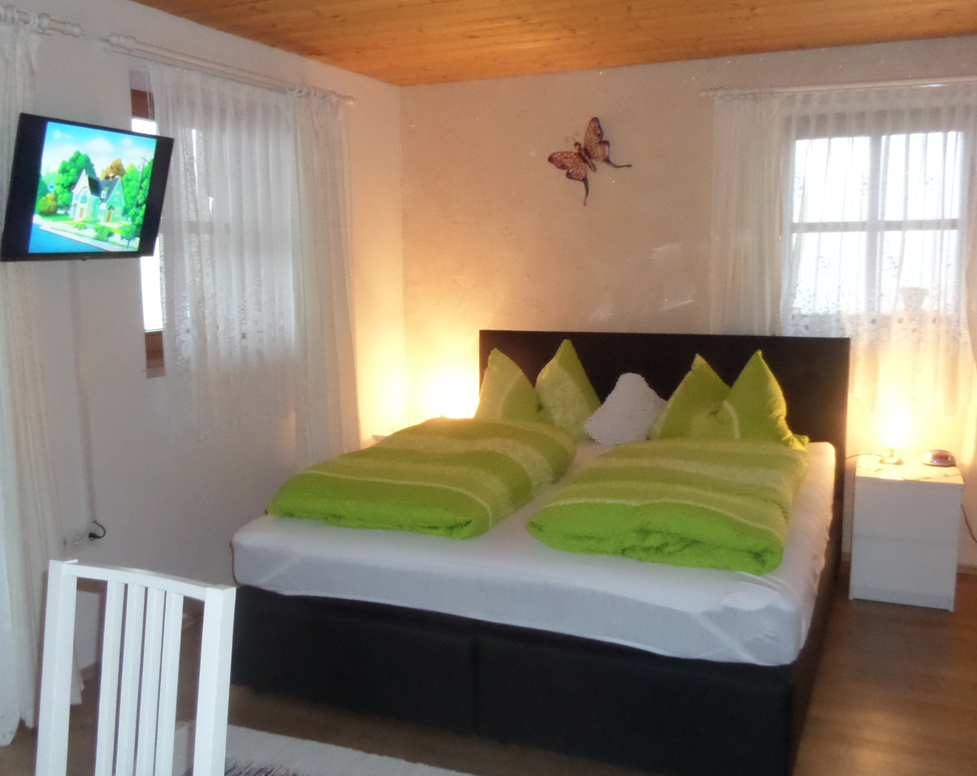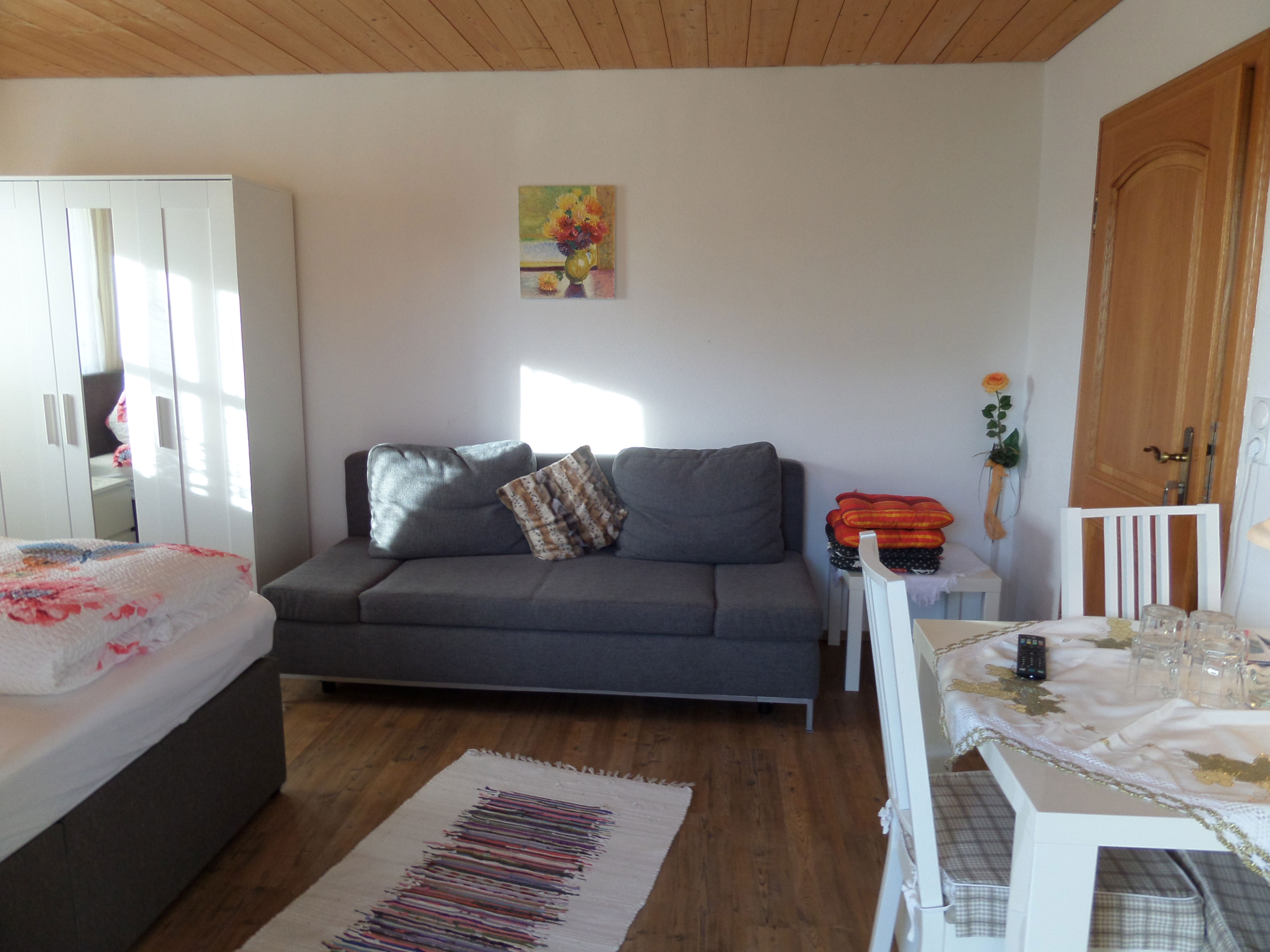 Unser gemütlich eingerichtetes Doppelzimmer Zinken mit zusätzlicher Schlafcouch, verfügen über ein Boxspringbett, einen Flachbild 32 Zoll SAT TV und ein Badezimmer mit Dusche und WC, Kosmetikspiegel und Fön. Vom Balkon aus können Sie einen herrlichen Bergblick genießen. Pro Zimmer steht ein kostenloser PKW Stellplatz zur Verfügung. Jeden Morgen sind Sie zwischen 07:30 und 09:00 Uhr herzlich zum reichhaltigen Frühstück mit Produkten aus der Region eingeladen.
