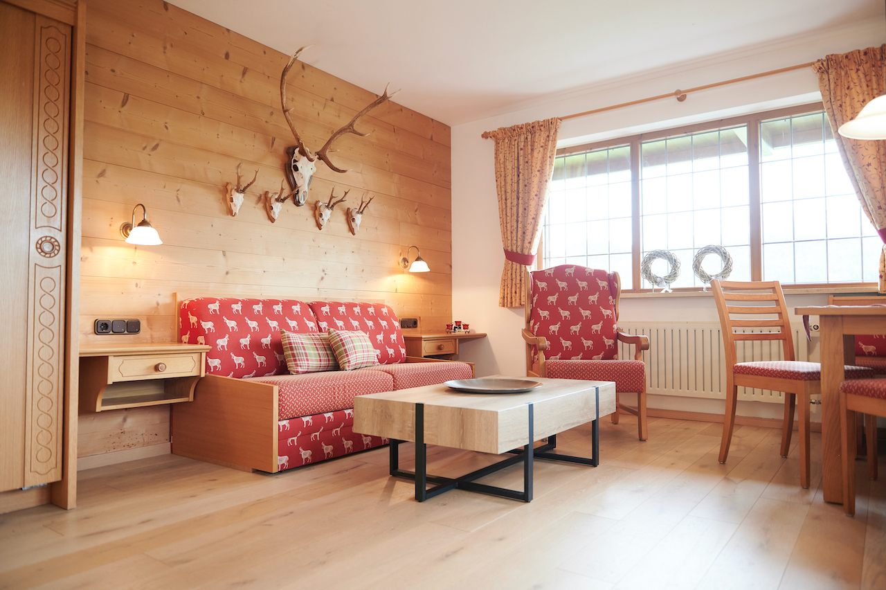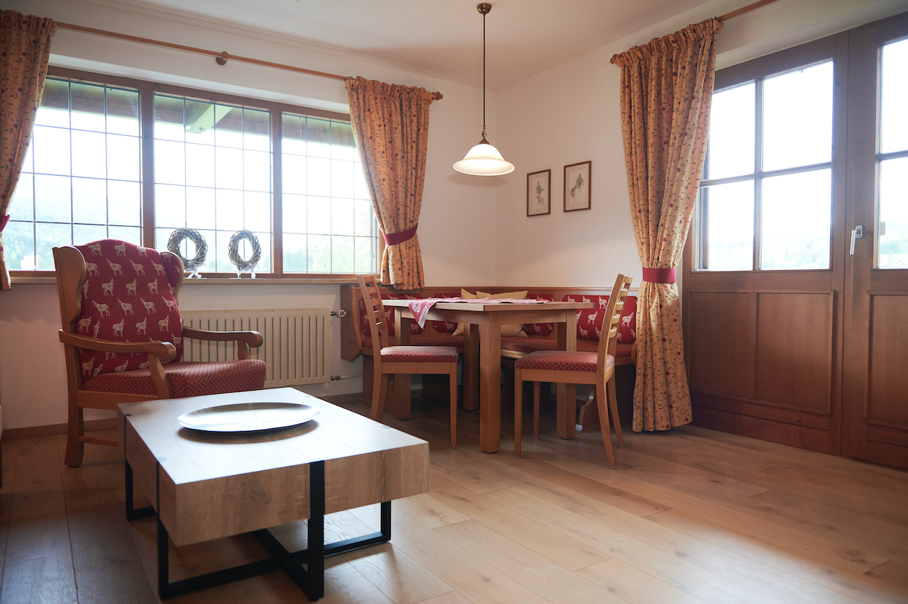 Helles Holz, warme Farben und der unvergleichliche Ausblick auf das Kaisergebirge und die Loipen vo dem Haus sorgen für Wohlfühlatmosphäre, von der Anreise bis zur Abreise. In der großen und geräumogen Wohnunge haben bis zu vier Personen genügen Platz für unbeschwerte Urlaubsstunden in Reit im Winkl.