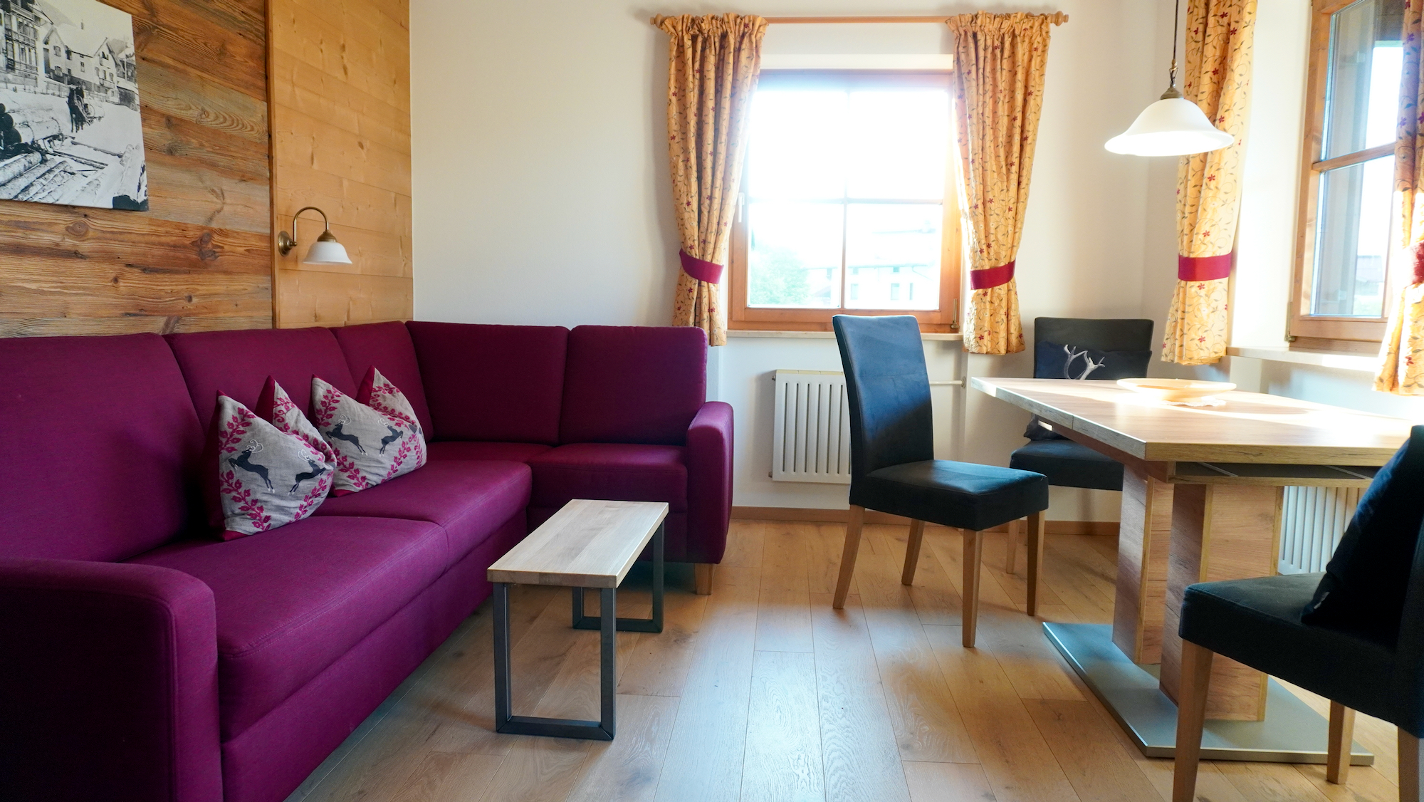 Unsere neu Drei-Raum-Ferienwohnung ist ideal für 1-4 Personen und befindet sich im ersten Stock. Helle Zimmer mit vielen Möbeln aus Holz sorgen für angenehme Wohlfühlatmosphäre während des Urlaubs. Auf dem Balkon können Sie den Blick auf das Kaisergebirge genießen, ein ganz besonderer Anblick.