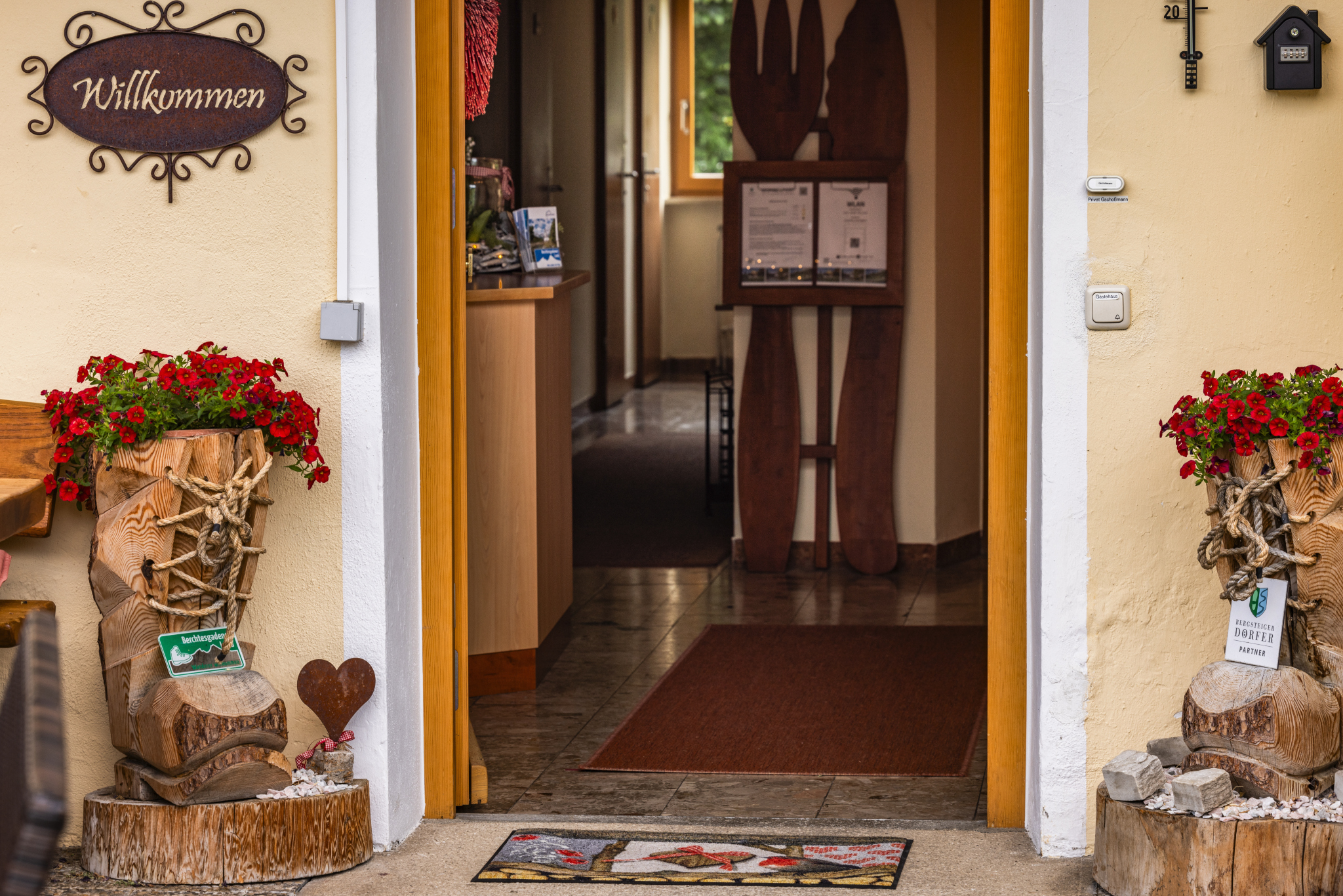 Auf 900m oberhalb des Ramsauer Tales am Fuße des Watzmanns mit einem sagenhaften und sonnigen Blick über die ganze Bergwelt bieten wir Ihnen Wohlig schlafen - Ausgiebig frühstücken - Genussvoll aktiv sein. Unsere im erfrischendem Design eingerichteten Nichtraucher- Komfortzimmer mit einem sonnigen und majestätischen Blick auf Watzmann, Hochkalter und Reiteralpe, bieten einen zeitgemäßen Standard Mit viel Liebe zum Detail, Herz und Leidenschaft begrüßen wir Hobby-Alpinisten, Wiederholungstäter und diejenigen die wir noch begeistern dürfen. Das Frühstück ist unsere großen Leidenschaft und wird jeden Tag individuell mit regionalen Produkten aus der Region mit viel Liebe zubereitet. Sie können dies auf unserer sonnigen Panoramaterrasse oder in unserem urigen Frühstücksraum genießen. Als besonderen Service für unsere Gäste steht ihnen unser Rastplatz mit kostenloser Tee/Kaffeebar, Gästekühlschränken, Bibliothek, Getränkeangebot zur Verfügung. WLAN im Haus kostenlos. Bestpreisgarantie bei Direktbuchung über Homepage oder per Email unter , es lohnt sich!! Oder einfach anrufen und sofort buchen. Wir freuen uns auf Sie!