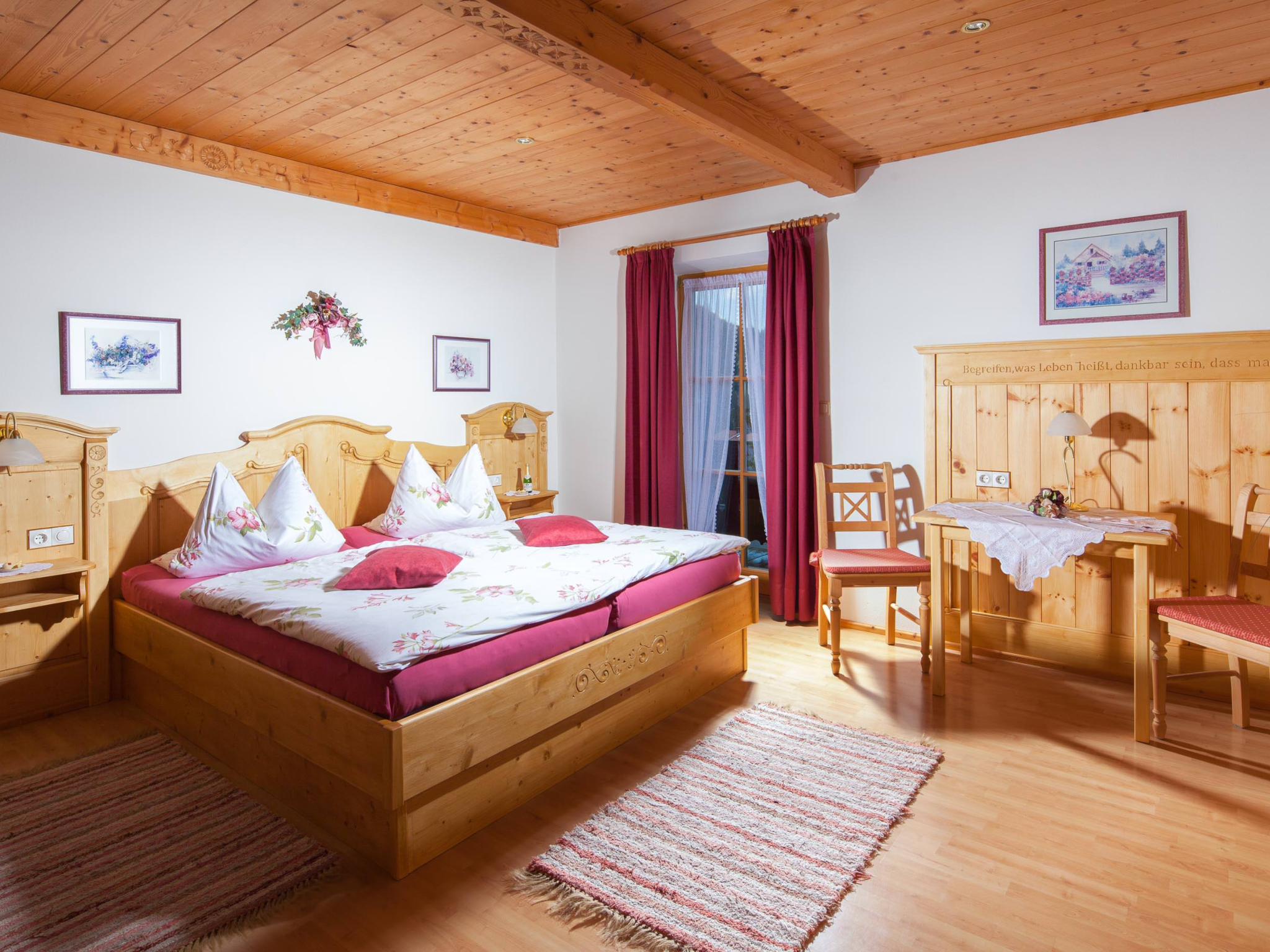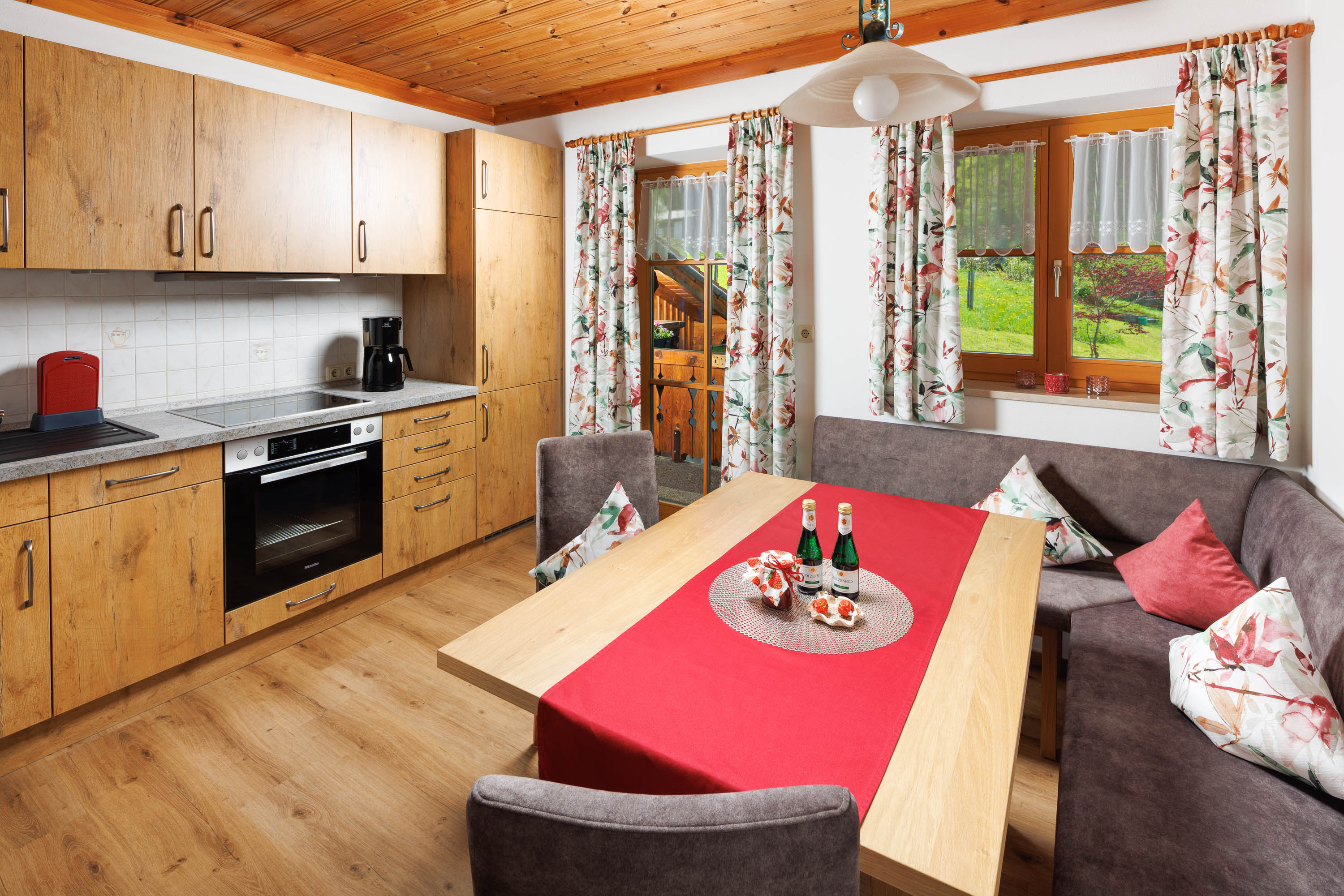 Die Ferienwohnung 1 mit 70 qm Wohnfläche, eingerichtet im typisch bayerischen Stil, befindet sich im 1. Stock. Sie hat einen Süd- und Westbalkon mit zauberhaften Blick auf die Berchtesgadener Alpen.Das bayerische Wohnzimmer mit bequemer Couch, SAT-Flachbildfernseher und Stereoanlage lädt zum Entspannen ein.In der separaten Küche befindet sich eine Sitzecke, Heißluftbackofen mit Ceranfeld, Kühlschrank mit Gefrierfach, Spülmaschine, Brotmaschine, Kaffeemaschine, Toaster, Wasser- und Eierkocher und ausreichend Geschirr und Kochtöpf.Diese Ferienwohnung hat zwei separate Schlafzimmer aus gemütlichen Naturholzmöbeln.Bad.Im geräumigen Bad mit WC sind Dusche, Waschbecken, Fön und ein Kosmetikspiegel vorhanden.
