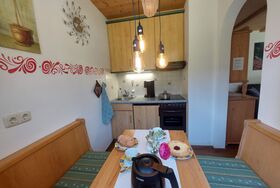 Die 40 m² große Ferienwohnung liegt im Erdgeschoss, verfügt über eine große Terrasse mit Gartenbestuhlung und Blick auf den Watzmann. Die Wohnung ist bestens ausgestattet mit Parkettböden, Holzdecken, Backofen, 4-Plattenherd, Mikrowelle,Wasserkocher, Kaffeemaschine, Eierkocher, Toaster, Sat-TV, kostenlosem WLAN, Spielesammlung, CD-Spieler mit Radio, Bücher, Radiowecker und Sitzgruppe im Wohnzimmer. Parkplatz direkt am Haus. Münzwaschmaschine und ein Münztrockner stehen zur Verfügung.