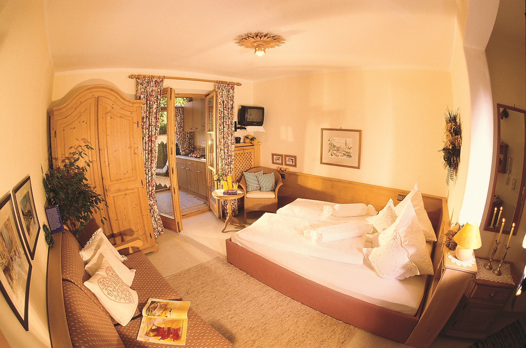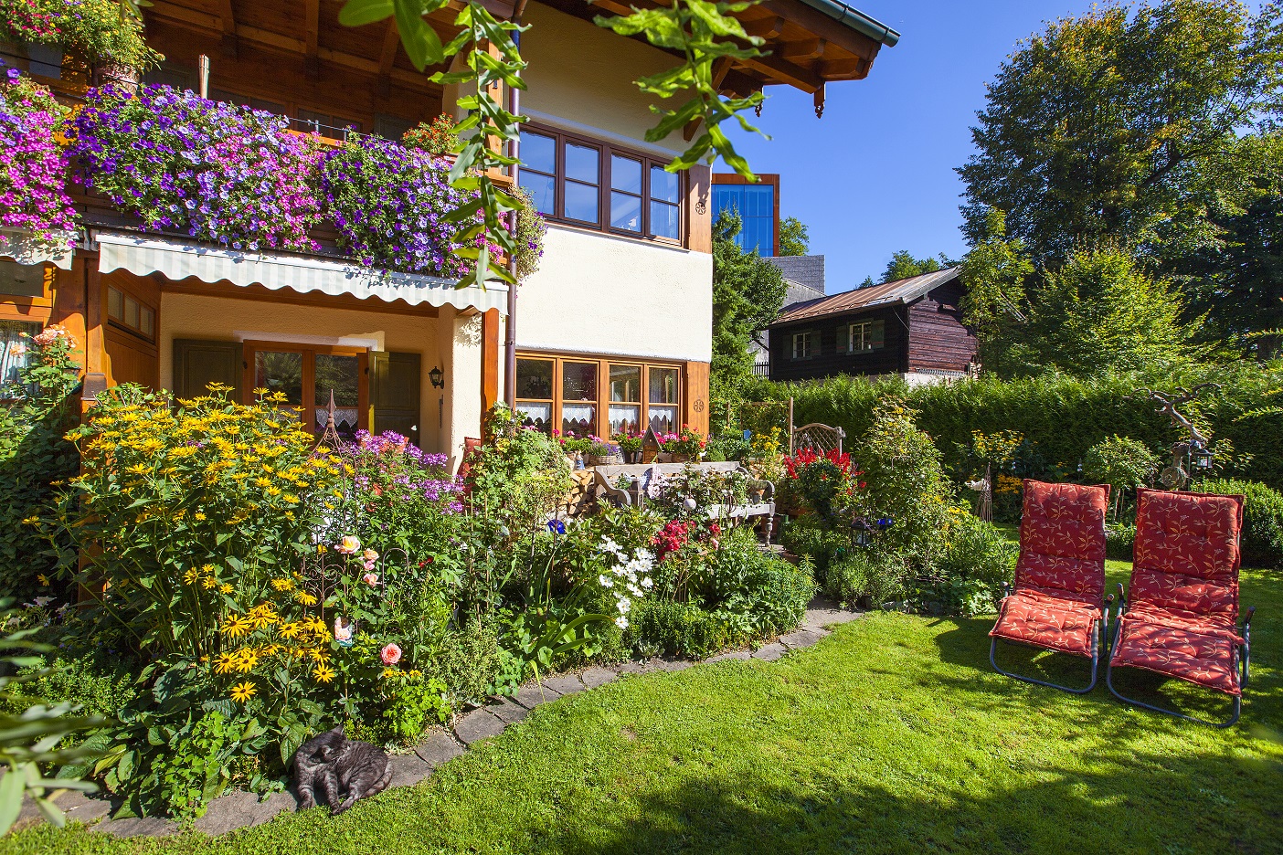 Komfortabel und liebevoll im Landhausstil eingerichtete 1 1/2-Zimmer-Nichtraucher-Wohnung mit separatem Eingang. Die Wohnung befindet sich in Süd-Lage mit abgeteilter uneinsichtiger Terrasse zum Blumengarten und einem schönen Bergblick. Das Wohn-Schlafzimmer ist ausgestattet mit einem Doppelbett und Sitzcouch; im kleinen Wintergarten befindet sich die Einbauküche mit 2-Platten-Ceranfeld, Dunstabzug, Kaffee- und Espressomaschine, Wasserkocher, Toaster und eine gemütliche Essecke. Desweiteren verfügt die Wohnung über Direktwahl-Telefon, W-LAN, Kabel-TV, Safe, Haarfön und eine eigene GARAGE mit Auflademöglichkeit für E-AUTO !!! Raucher bitten wir, ihre Zigarette auf der Terrasse zu geniessen.