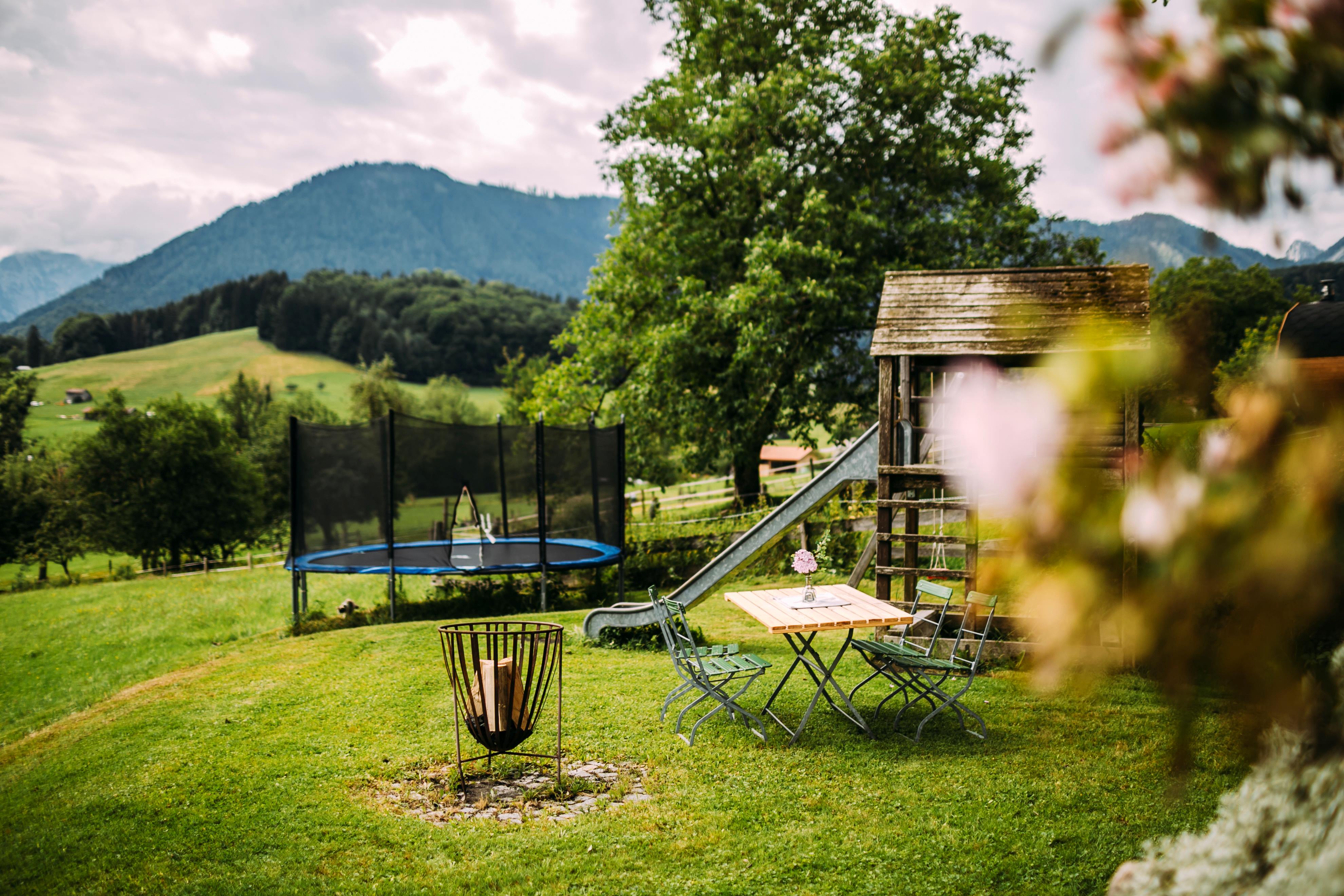 Unser Hof liegt an einem Südhang mit herrlichem Bergblick, umgeben von saftigen Wiesen.Die Dorfmitte ist zu Fuß bequem in ca. 10 Minuten zu erreichen. Das grandiose Alpenpanorama kann jeder von seinem eigenen Balkon aus genießen. Unsere vier neu renovierten Ferienwohnungen haben eine gemütliche Atmosphäre. Sie sind ausgestattet mit schönen Holzdielenboden, modernen Bädern und Vollholzküchen. Für eine romantische Stimmung sorgen die mit Sichtfenstern ausgestatteten Kachelöfen. Natürlich ist Zentralheizung vorhanden. Die Balkone bieten einen fantastischen Blick und laden zum Verweilen ein. Im Winter lädtder hauseigene Lift , nur 5 Gehminuten entfernt, zum Ski- und Schlittenfahren ein.