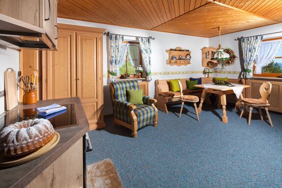 Neu renovierte, gemütlich und gut ausgestattete Nichtraucher-Ferienwohnung im 1. Stock für bis zu 5 Personen mit herrlichem Blick auf die umliegenden Berge und Täler. Die zum Haus gehörende großzügige Terrasse und ein Freisitz im Garten laden zum langen Verweilen ein. Die Wohnung ist mit einem Schlafzimmer sowie einem Wohnschlafzimmer und einer Wohnküche ausgestattet. Sie verfügt dazu über kostenfreies W-LAN und einen TV. Als Vital-Natur-Erlebnis Gastgeber bieten wir Ihnen ein abwechslungsreiches Aktiv-Programm für Ihren Urlaub.