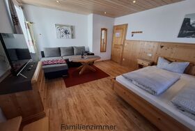Unser komfortables Familienzimmer ist mit Echtholzmöbel eingerichtet. Zur Standardausstattung gehört eine Sitzecke mit Tisch, ein separates Kinderzimmer mit 2 getrennten Betten, TV und kostenloses W-LAN,sowie ein Badezimmer. Das geräumige Zimmer ist für 3-5 Personen geeignet.Das Zimmer hat einen großen Balkon mit herrlichem Bergblick. Die Zimmergröße beträgt 43 qm.