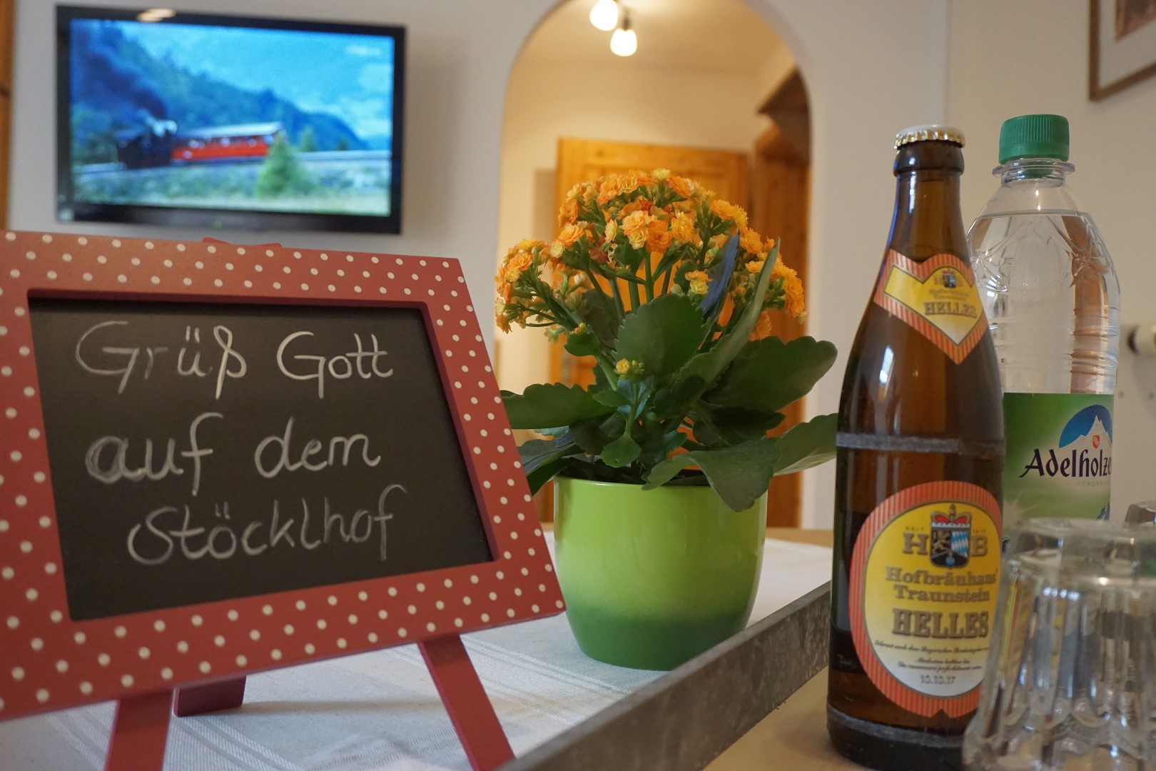 Das gemütliche neu renovierte Appartement Sternengugga im Bauernhaus, 2. Stock, Dachgeschoss (28 m²) hat einen Wohn-Schlafraum mit einem Doppelbett (1,80 x 2,00 m), Küchenzeile und ein Bad mit WC. Ausstattung: zwei Kochplatten mit Backrohr, Kühlschrank mit Gefrierfach, Wasser-, Eierkocher, Toaster, Kaffeemaschine, Flachbildfernseher, Radio, Babyausstattung (Hochstuhl, Babybett und Wickelauflage) ist vorhanden und nach Absprache verfügbar. Ein Reisebett kann jederzeit dazugestellt werden. Bettwäsche, Handtücher und Geschirrtücher werden gestellt. Unsere Ferienwohnung wurde vom DTV mit 3 Sternen ausgezeichnet. Unsere Wohnungen sind für Allergiker geeignet, deshalb können wir keine Haustiere aufnehmen!