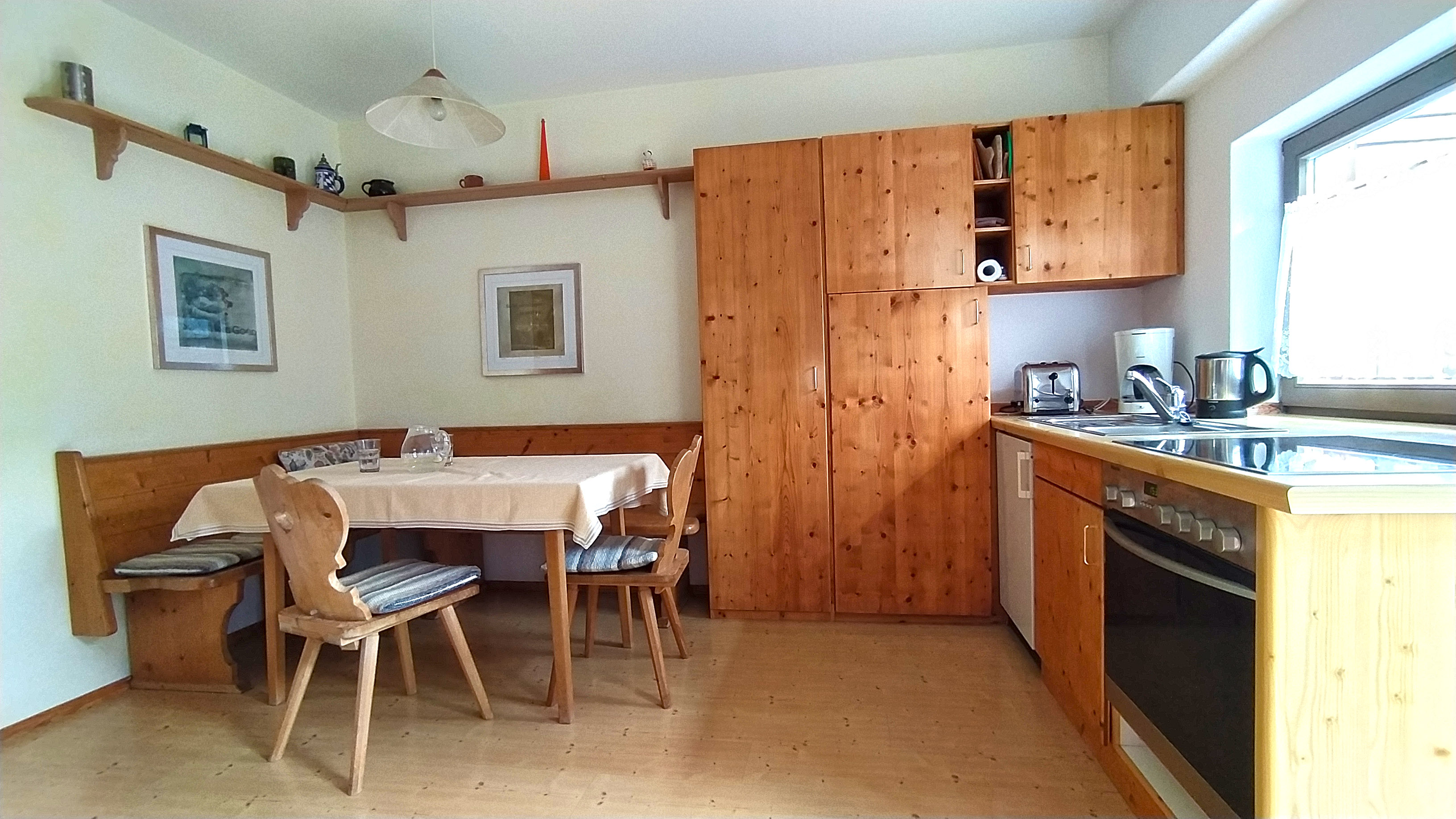 Ein eigener Eingang führt in die komfortabel eingerichtete Wohnung. Sie ist mit einer kompletten Küche, einem Bad mit Dusche, zwei separaten Schlafzimmern und Sat-TV mit DVD-Player ausgestattet. Für die ganz Kleinen sind Kinderbetten, Hochstühle, Spielzeug und eine Rückentrage vorhanden. Jede Wohnung hat eine möblierte Terrasse. Die große, sonnige, windgeschützte Terrasse gibt den Blick frei auf den Rauschberg, das Sonntagshorn und den Unternberg.