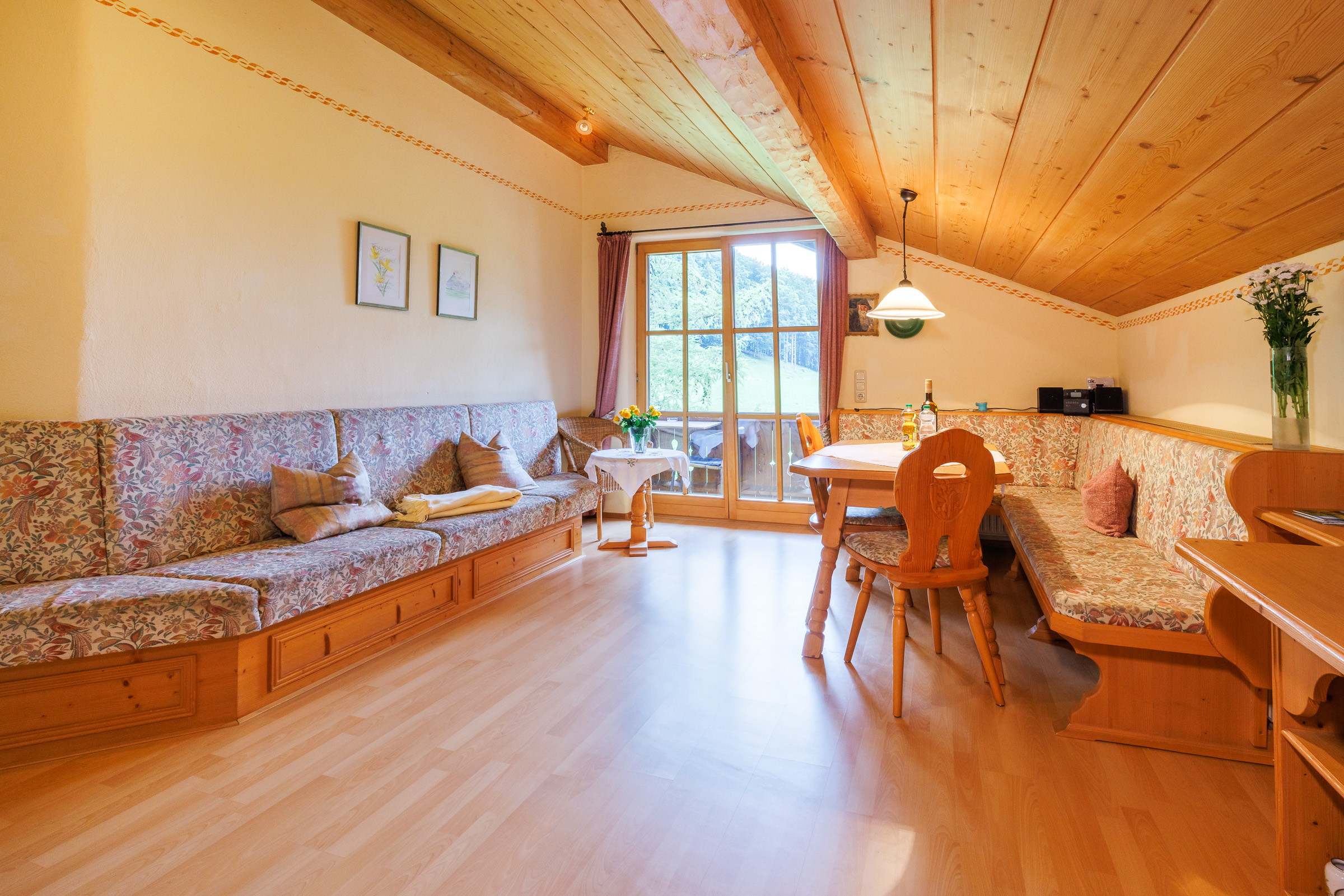 Auf insgesamt 60 m² bietet die Ferienwohnung Moritz ausreichend Platz für 2-4 Personen. Der gemütliche Wohn-Essbereich wurde im bayerischen Landhausstil eingerichtet und verfügt über eine gemütliche Essecke, einen Fernseher und eine komplett ausgestattete Küche. Für die Erholung nach einem aufregenden Urlaubstag stehen 2 getrennte Schlafzimmer für Sie bereit. Im ersten Schlafzimmer finden Sie ein großes Doppelbett, im zweiten Schlafzimmer zwei getrennte Einzelbetten. Die Ferienwohnung verfügt zudem über ein Badezimmer mit Dusche und WC sowie einen großen Balkon mit Sitzgelegenheit und Sonnenschirm.
