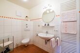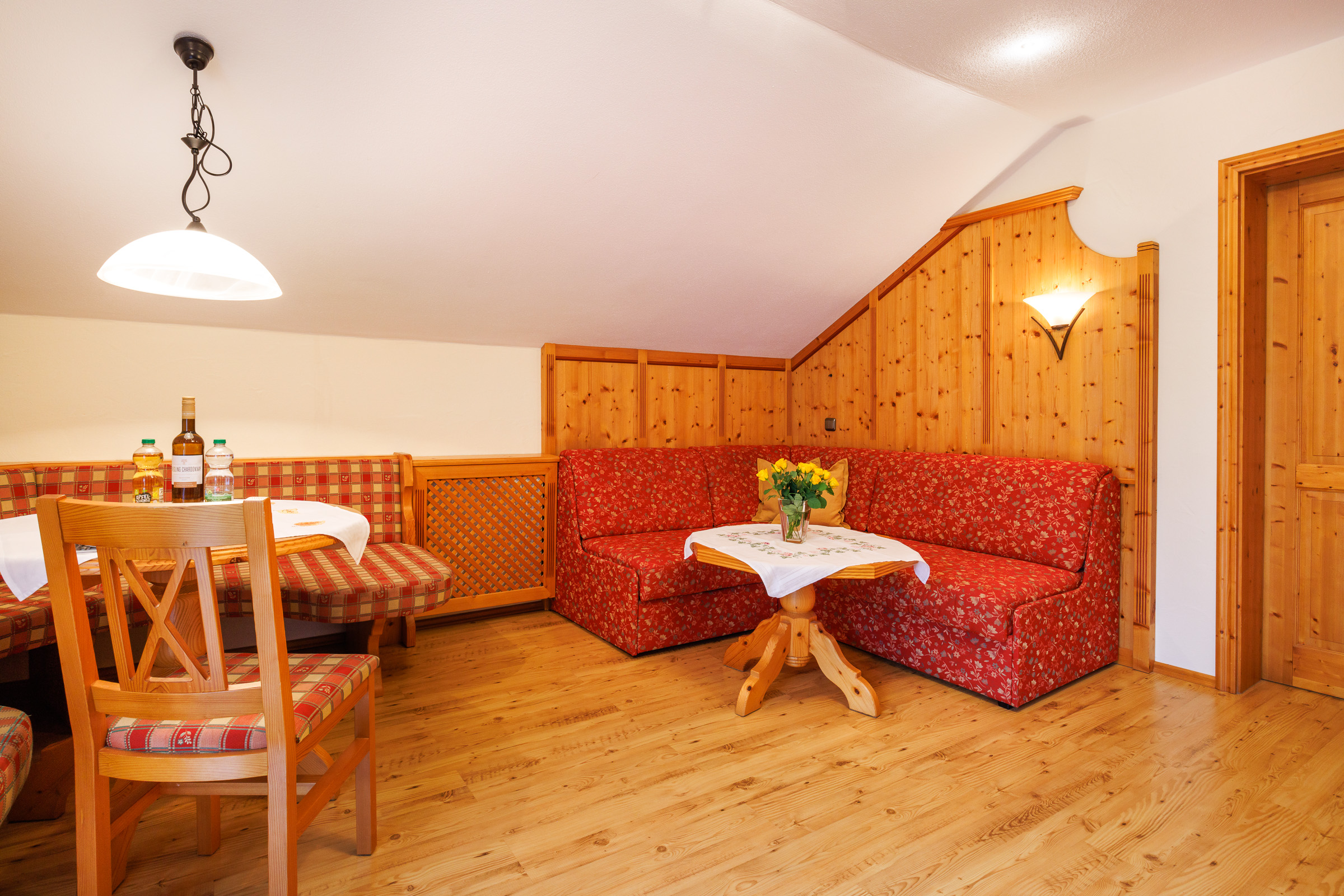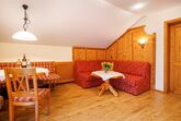 Unsere Ferienwohnungen bietet auf 48 m² ausreichend Platz für 2 Personen. Mit der leichten Dachschräge und den teilweise abgerundeten Türrahmen besticht die Ferienwohnung durch ein außergewöhnlich gemütliches Ambiente. Der Wohn-Essbereich ist im bayerischen Landhausstil eingerichtet und verfügt über eine Essecke sowie eine gemütliche Couch und einen Fernseher. Vom Wohnzimmer aus gelangen Sie auch auf den großen Balkon mit Sitzgelegenheit und Sonnenschirm. Im Wohn-Essbereich befindet sich die offene und komplett ausgestattete Küche. Im Badezimmer finden Sie eine Dusche und ein WC.