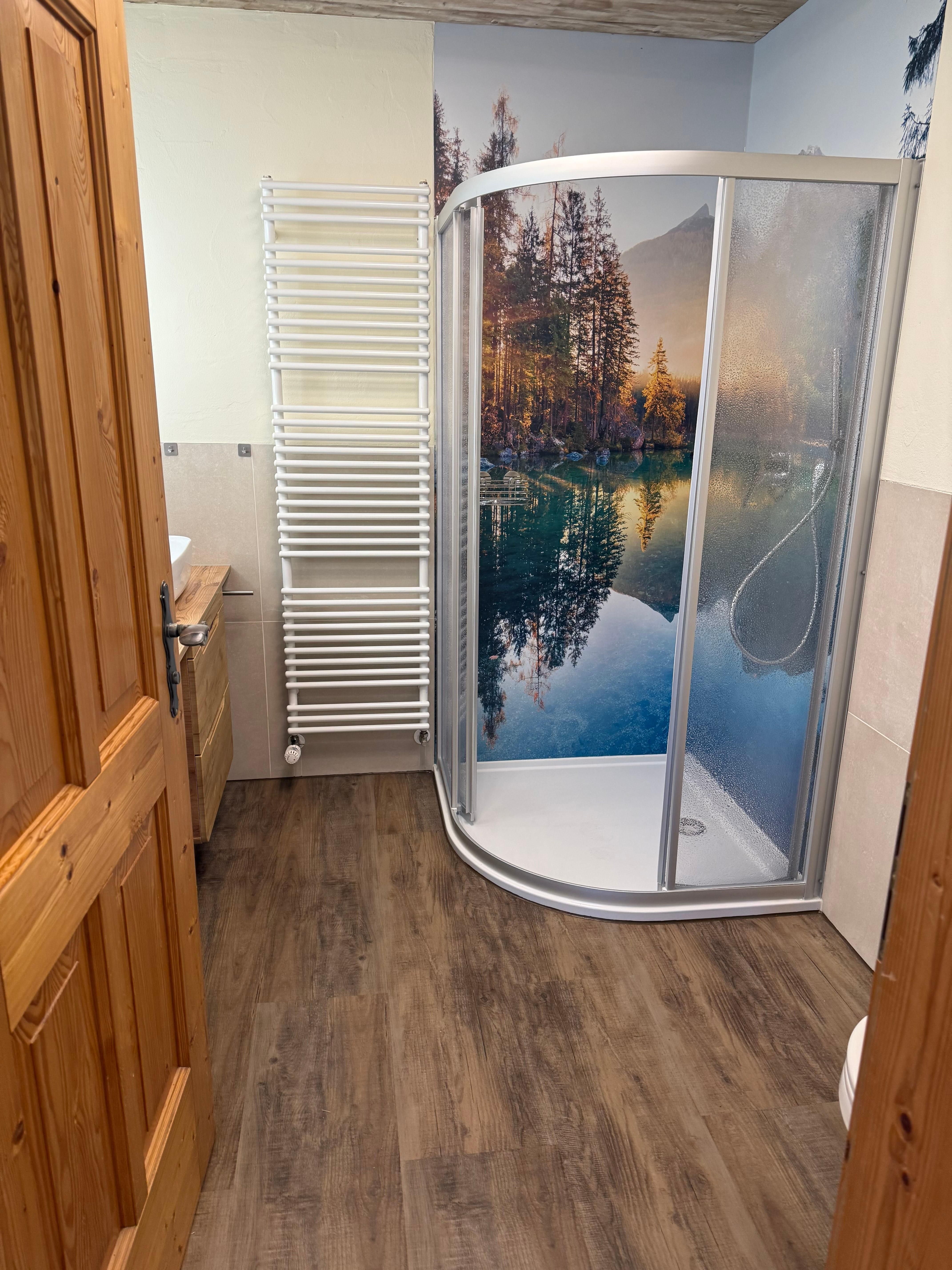 • 1 Badezimmer mit Dusche und WC, Handtücher, Badetücher und Fön