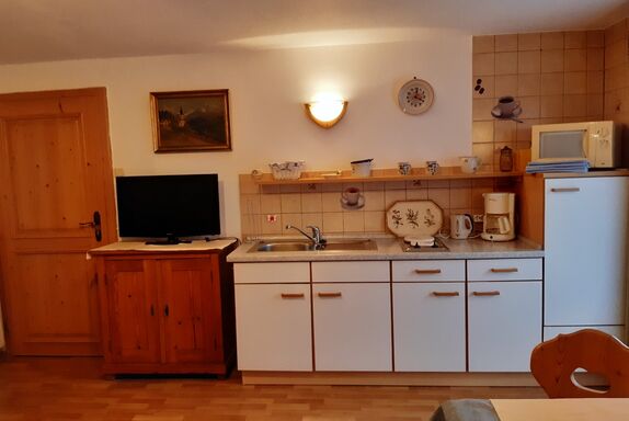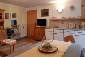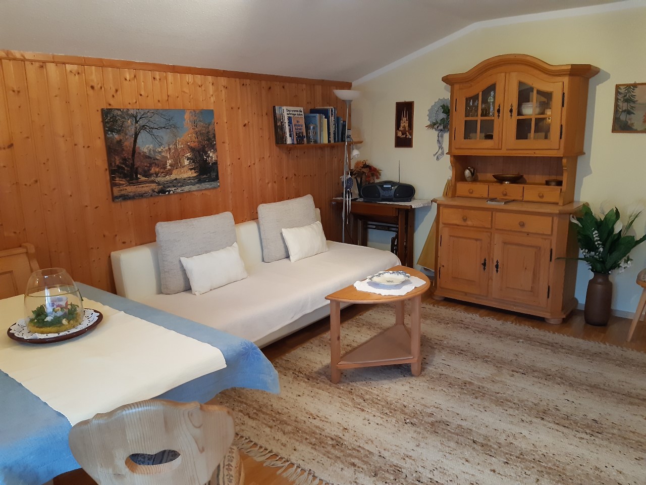 Die ruhig gelegene Ferienwohnung befindet sich im ersten Stock und bietet Platz auf 45 qm. Sie ist ausgestattet mit einer Wohnküche, TV, Radio, einem separaten Schlafzimmer, Dusche/WC und einem kleinen Flur. Auf dem großen, möblierten Balkon genießen Sie den Blick auf Kehlstein, Hohen Göll, Brett, Jenner.