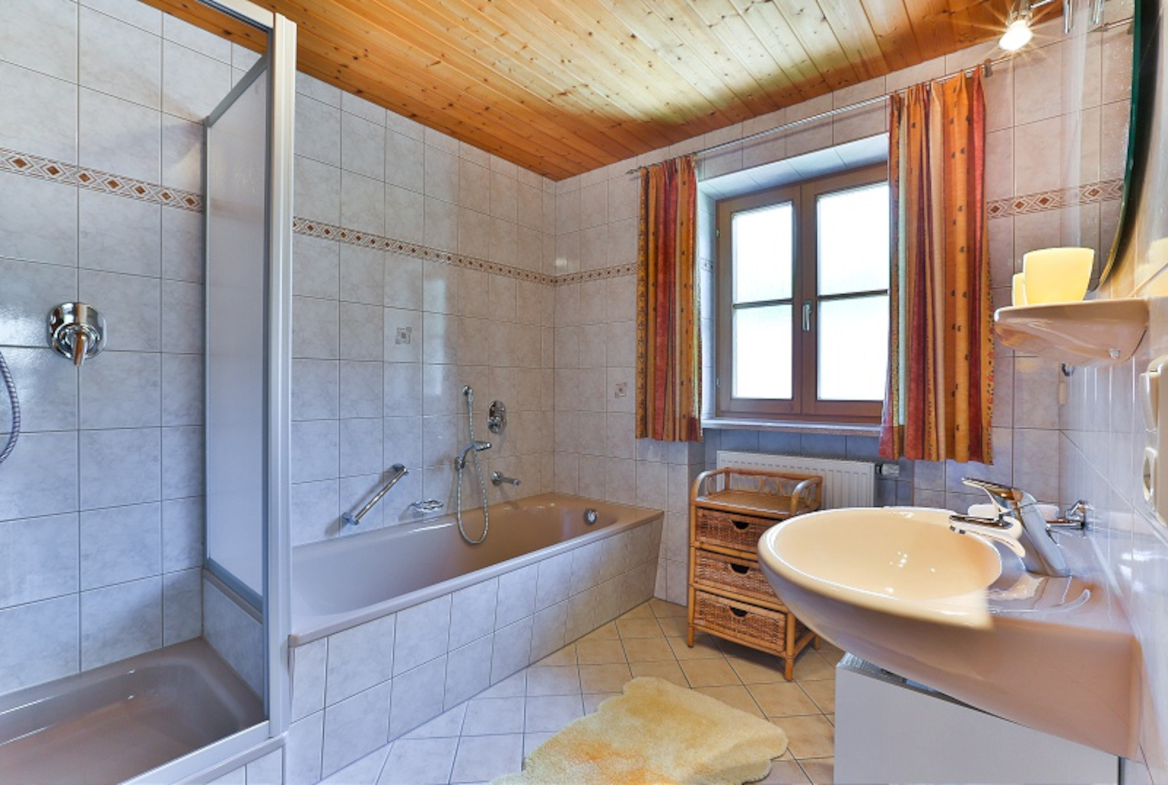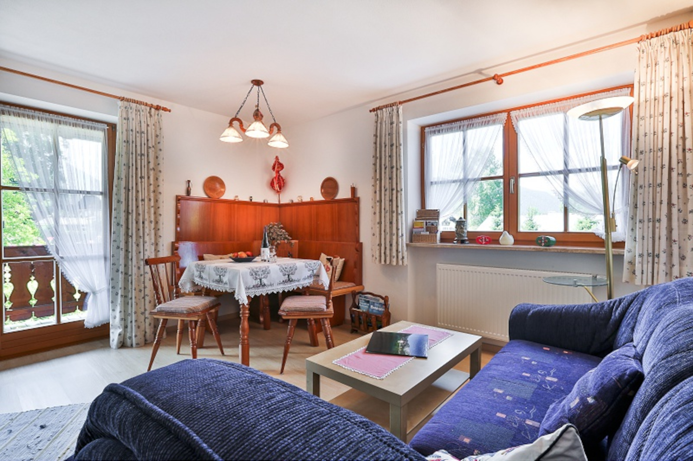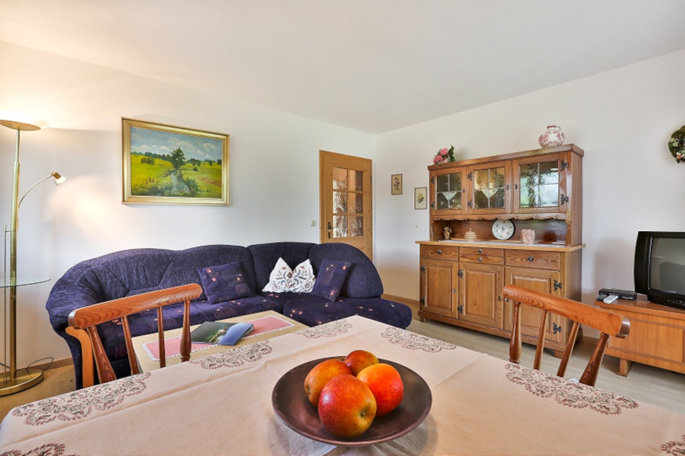 Unsere großzügige Ferienwohnung ist gemütlich eingerichtet und besteht aus Wohnzimmer, Küche, 2 getrennten Schlafzimmern (zweites Schlafzimmer verfügt über eigene Dusche/WC), Bad, WC, einen großen Balkon und ist mit 3 Sternen Klassifiziert. Farb-SAT-TV steht zur Verfügung. Die Küche ist voll eingerichtet.