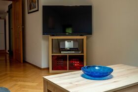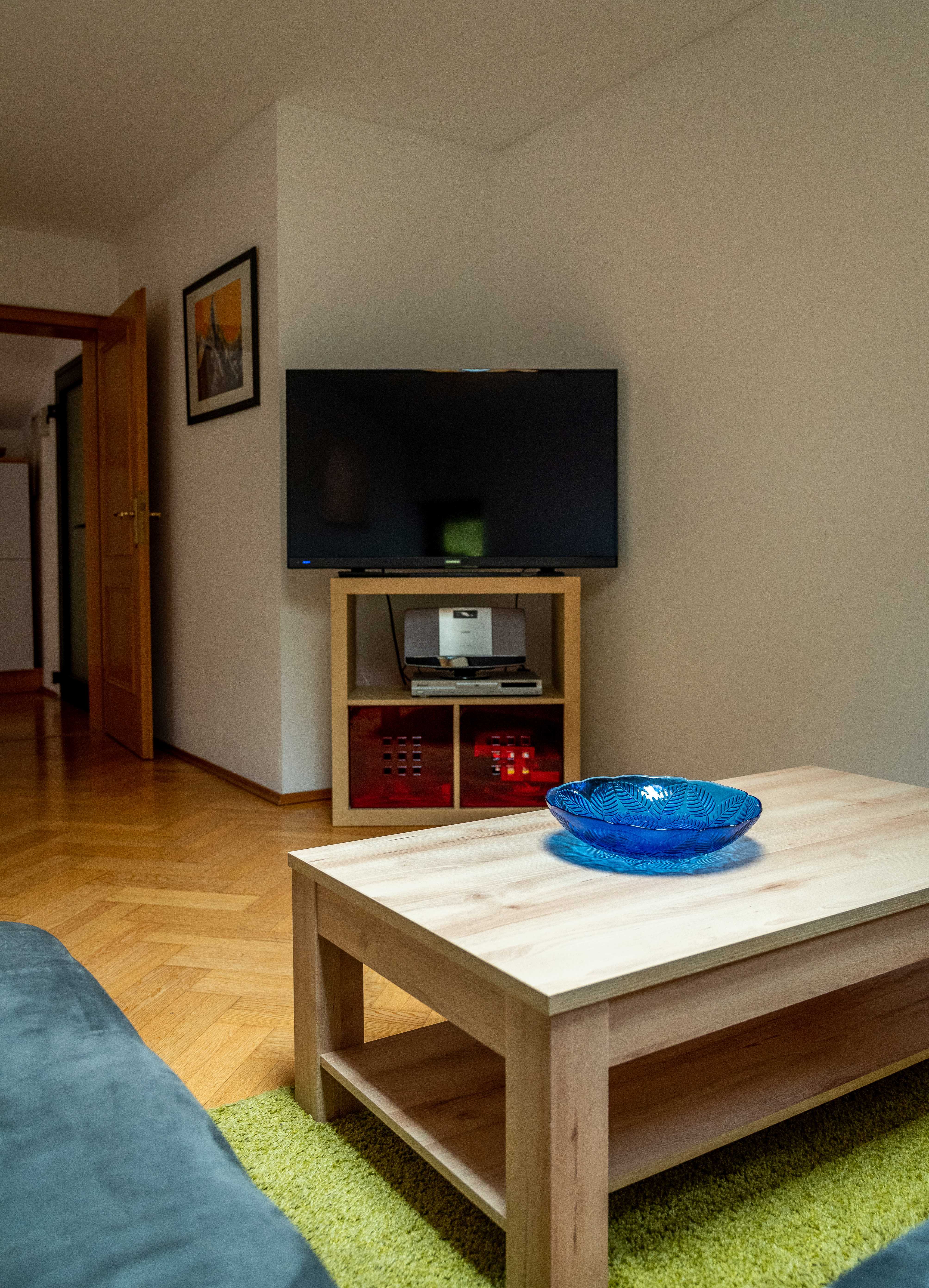 Top ausgestattete Ferienwohnung 75 m² mit kleiner Terrasse (Grillmöglichkeit), Küche mit Spülmaschine, Backrohr, Gefrierfächer, Mikrowelle, Bad mit Wanne und Dusche, Parkett, Fußbodenheizung, Bettwäsche, Handtuchgrundausstattung, Fön, Kabel-TV, 1 Flasche Wein zur Begrüßung, ein Willkommensgeschenk für die Kleinen, Kinderbett, Kinderhochstuhl, Kindertisch mit Stühle auf Wunsch, Stellplatz, Garage auf Anfrage, Rad- und Skikeller.