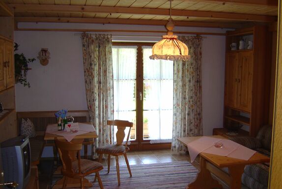 Unsere Ferienwohnung Inzell ist eine 2-Raum-Wohnung mit einem separaten Schlafzimmer (mit 3 Schlafgelegenheiten) sowie einem Wohnraum. Sie verfügt über eine Terrasse mit schöner Sitzgelegneheit, auch der Garten kann mit benutzt werden, sowie ein Bad mit Dusche/WC. Die Wohnküche mit gemütlicher Essecke lädt zum Verweilen ein. Die Wohnung befindet sich im Erdgeschoss und ist für bis zu 3 Personen geeignet. Unsere Wohnungen verfügen über eine Fußbodenheizung.