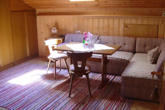 Unsere rustikal eingerichtete Ferienwohnung Königssee ist eine 2-Raum-Wohnung mit einem separaten Schlafzimmer sowie einem Wohnraum. Sie verfügt über einen Balkon und ein Bad mit Badewanne und Bidet. Das gemütliche Wohnzimmer lädt zum Verweilen ein. Die Wohnung befindet sich im Dachgeschoss und ist für bis zu 2 Personen geeignet. Unsere Wohnungen verfügen über eine Fußbodenheizung.