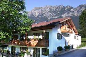 Unser Haus liegt in ruhiger und sonniger Südhanglage auf rund 800 m Meereshöhe über dem Ramsauer Tal unterhalb des Soleleitungsweges.