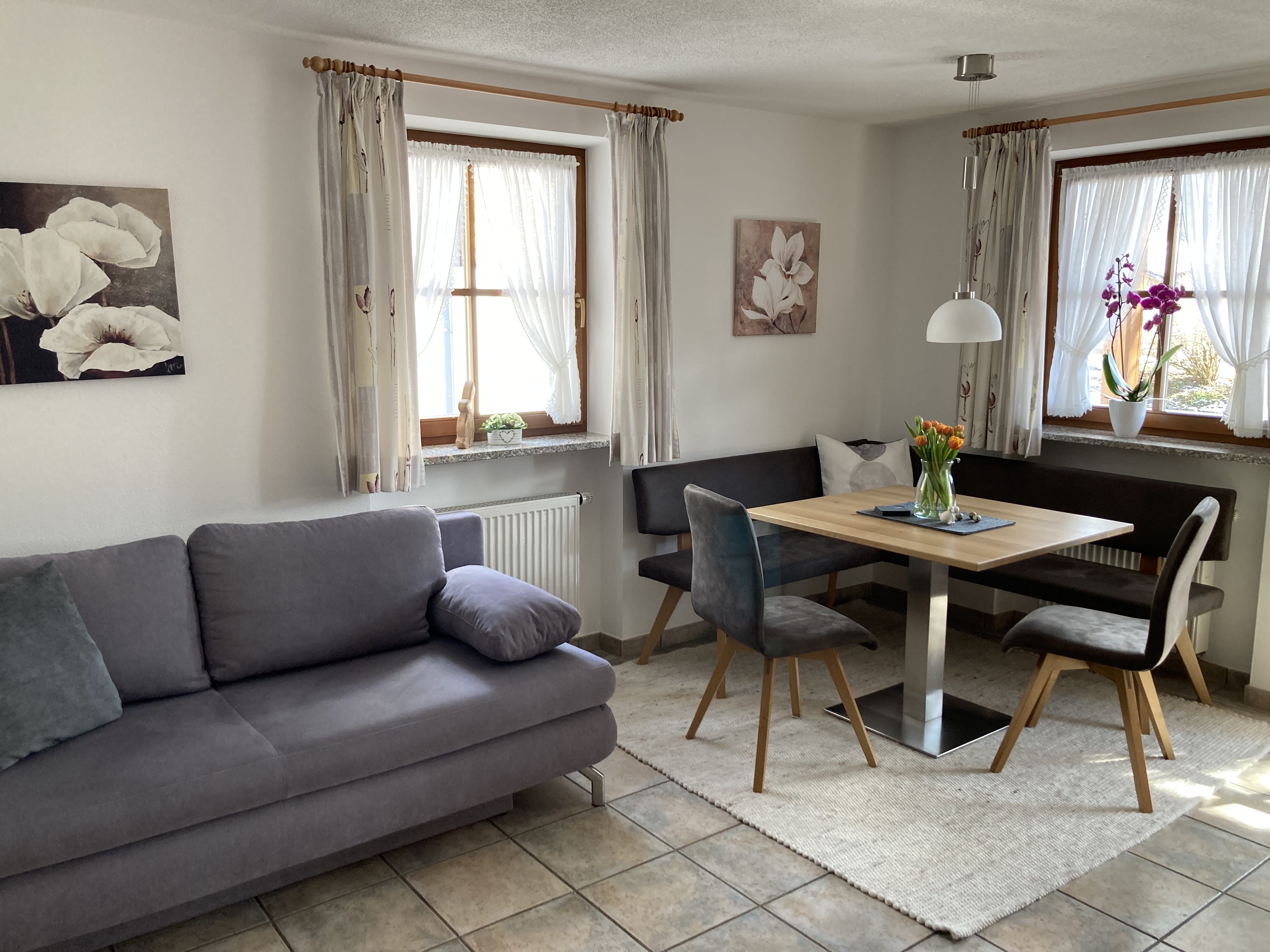 Die Wohnung liegt im ersten Stock und verfügt über einen eigenen Eingang. Gäste-WLAN, sowie gute Winterzufahrt und Parkplatz sind vorhanden. Bitte beachten Sie, dass wir ein Nichtraucherhaus sind und keine Haustiere aufnehmen. Die Bushaltestelle 'Auf der Reiten' für den kostenlosen Wanderbus ist nur 220m entfernt.