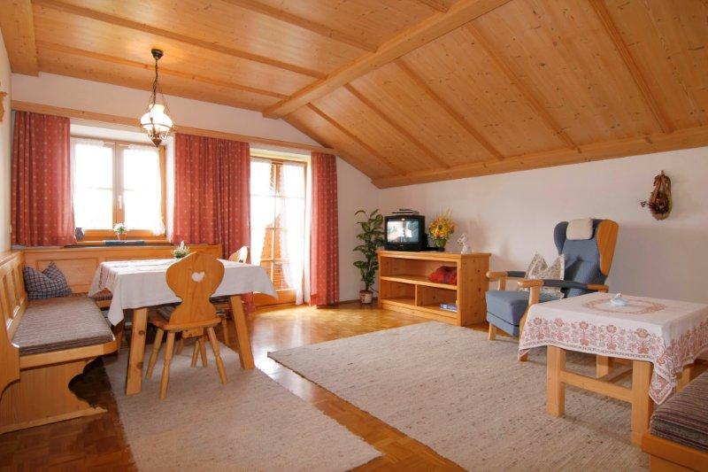 Gepflegter Bauernhof in ruhiger Ortsrandlage mit herrlichem Ausblick auf die Berge. Liegewiese, Grill- und Spielplatz, Pferde und viele Streicheltiere, Wander-, Rad-, und Bergtouren sowie Langlaufloipen direkt vom Hof. Frühjar und Herbst besonders geeignet für Senioren. Freischwimmbad und Tennisplatz in nächster Nähe. Idealer Ausgangspunkt für Inline-Skater.