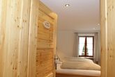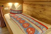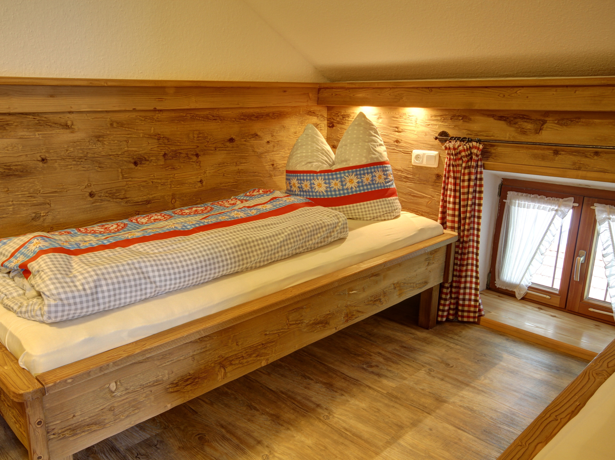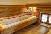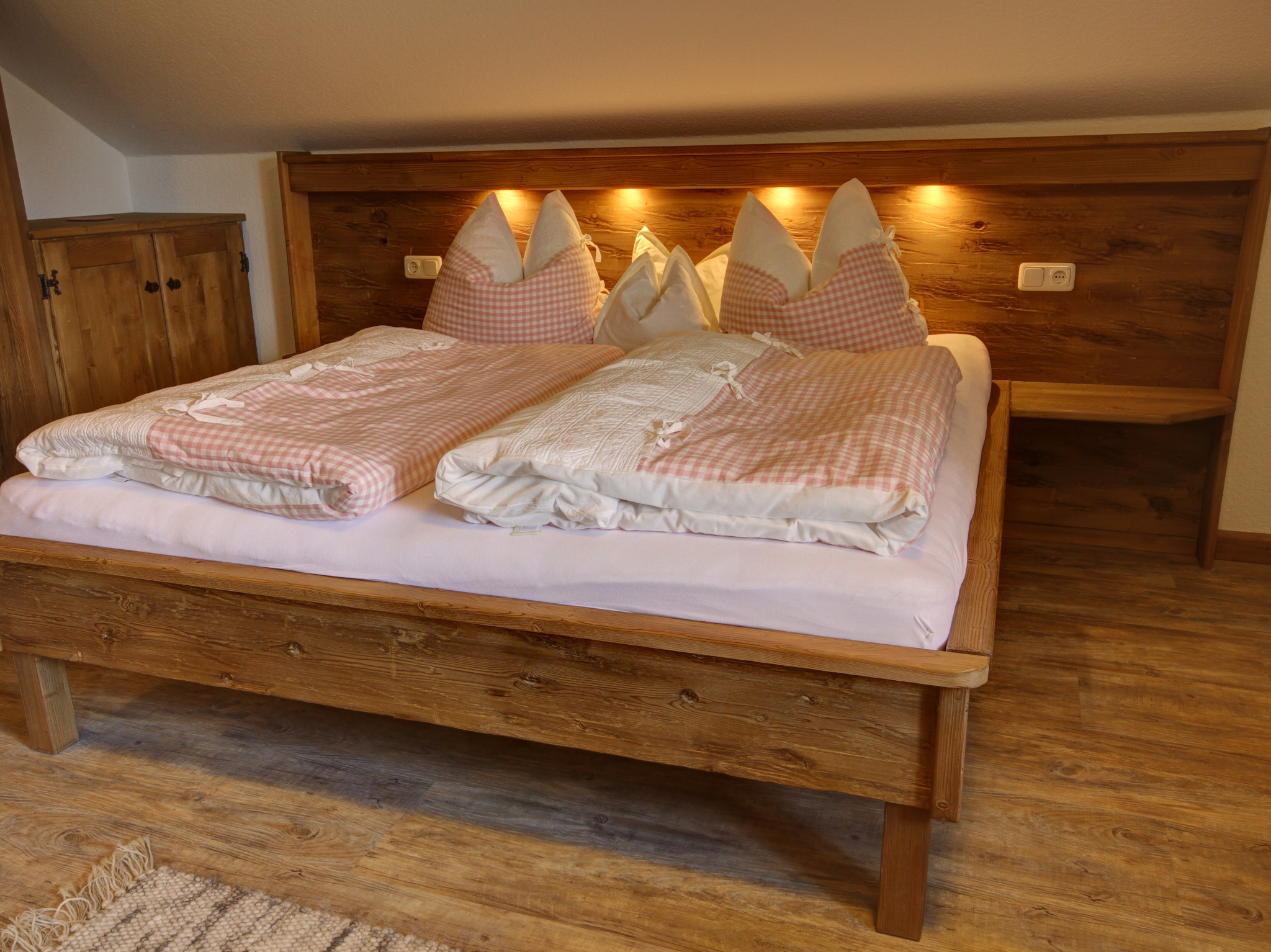 Rustikal eingerichtes Familienzimmer (= Doppelzimmer mit Verbindungstür zu einem zweiten Schlafzimmer) mit schönem Bergblick.