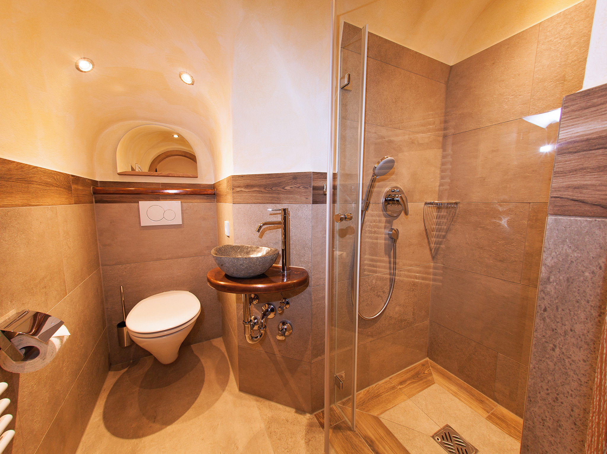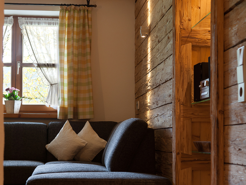 Hier erwartet Sie moderner Komfort in stilvollem Ambiente: handgefertigte Einrichtung aus duftendem Holz, edler Naturstein in den Bädern und urige Deckenbalken schaffen ein urgemütliches Wohnvergnügen.